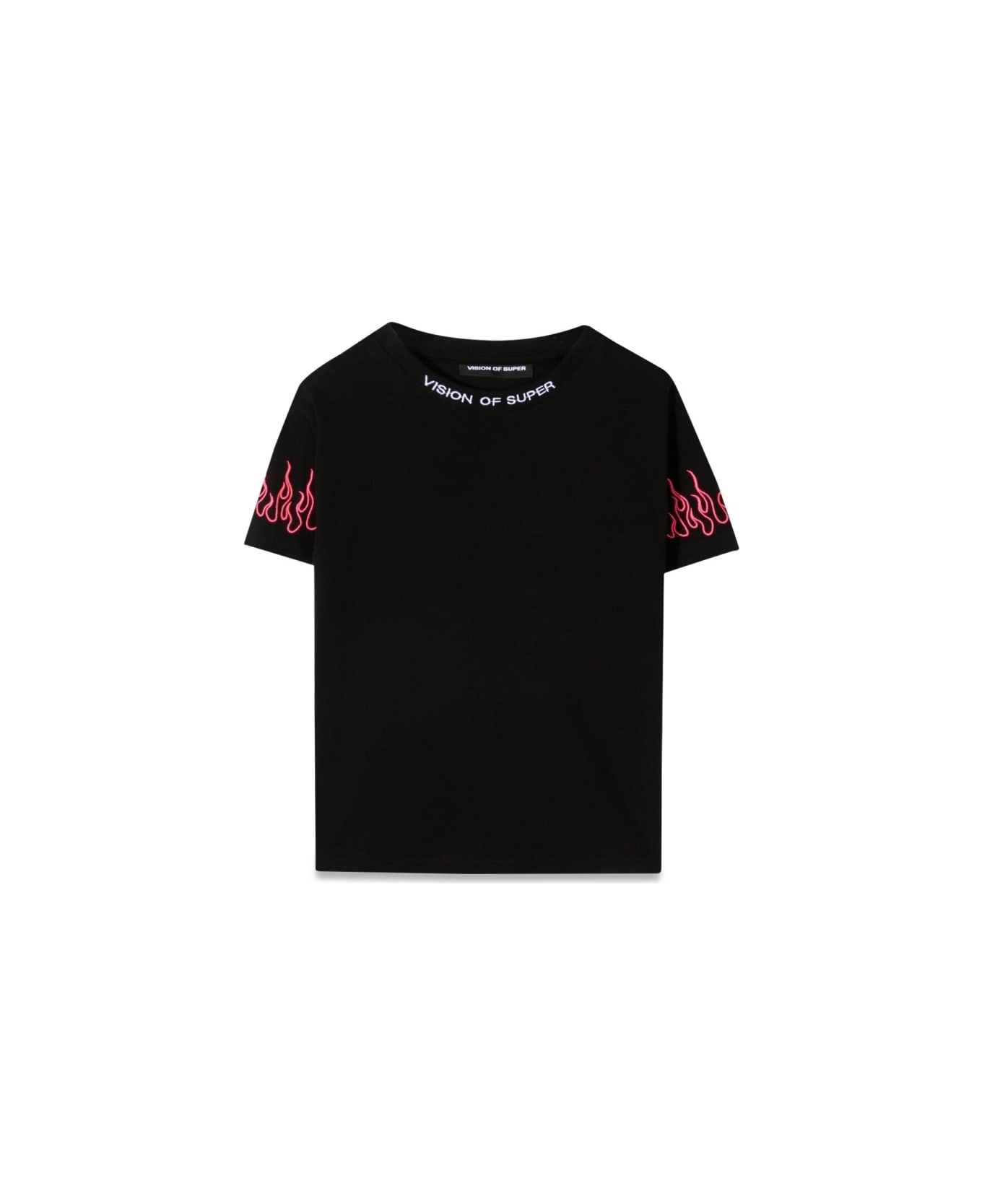 Black Embroidered Tshirt Fuchsia Flame