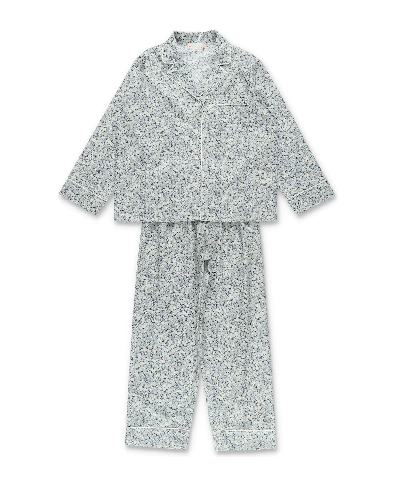 Stylish Dormeur Pajamas For Girls In Liberty Fabric Featuring A Refined Floral Pattern, Piped Edges, And An Embroidered Cherry On The Chest Pocket. Soft Certified Organic Cotton Ensures Comfort And Skin-friendly Wear. Certified Organic Cotton Button-fastened Top Piped Finishes Presented In A Pouch