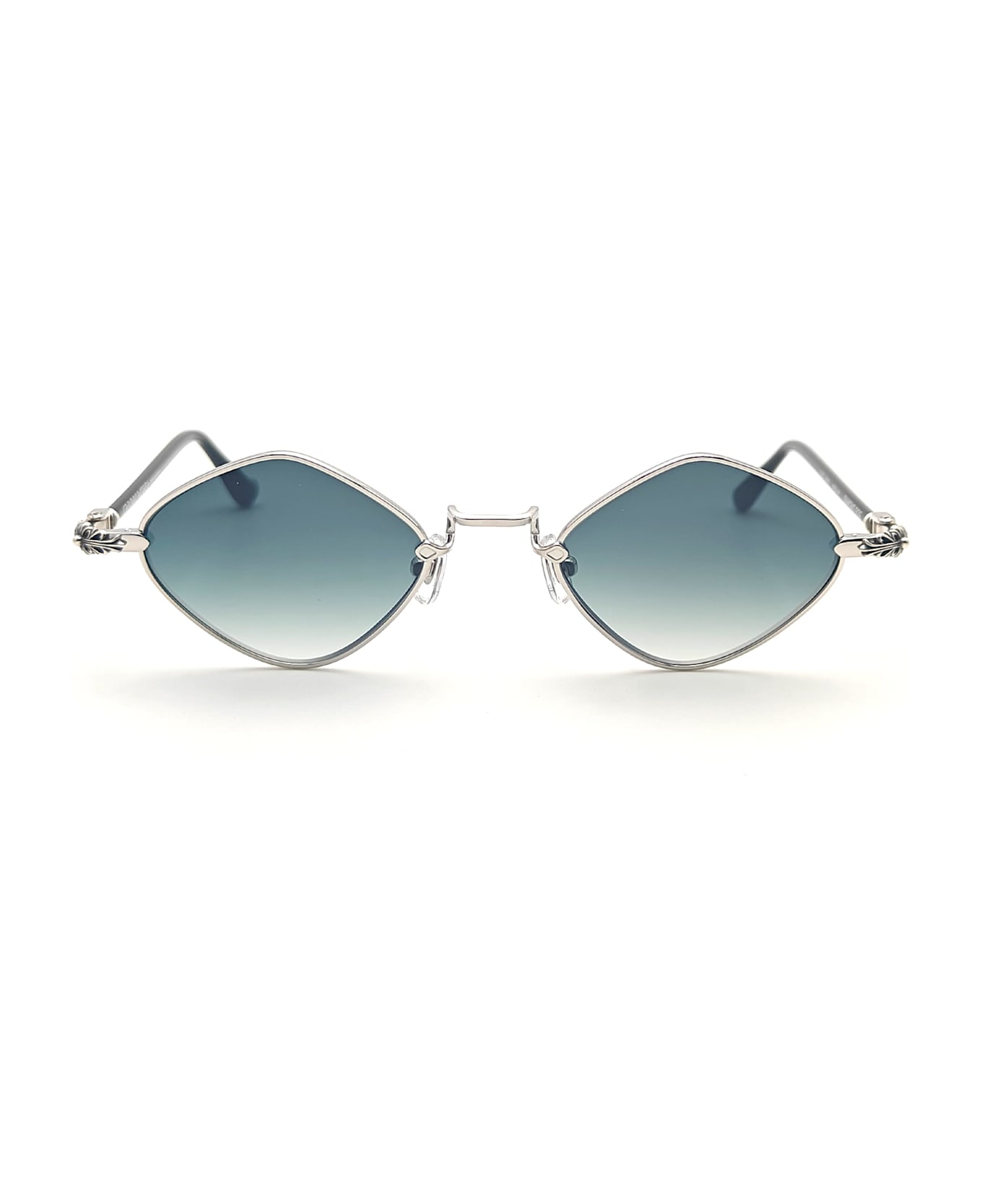Brand: Chrome Hearts Model: Diamong Dog - Shiny Silver / Black SKU: 324151902234E50076 Type: Sunglasses Color: Shiny Silver Material: Titanium Lens color: Gradient Grey Size: 50mm-22mm-141mm Made in Japan