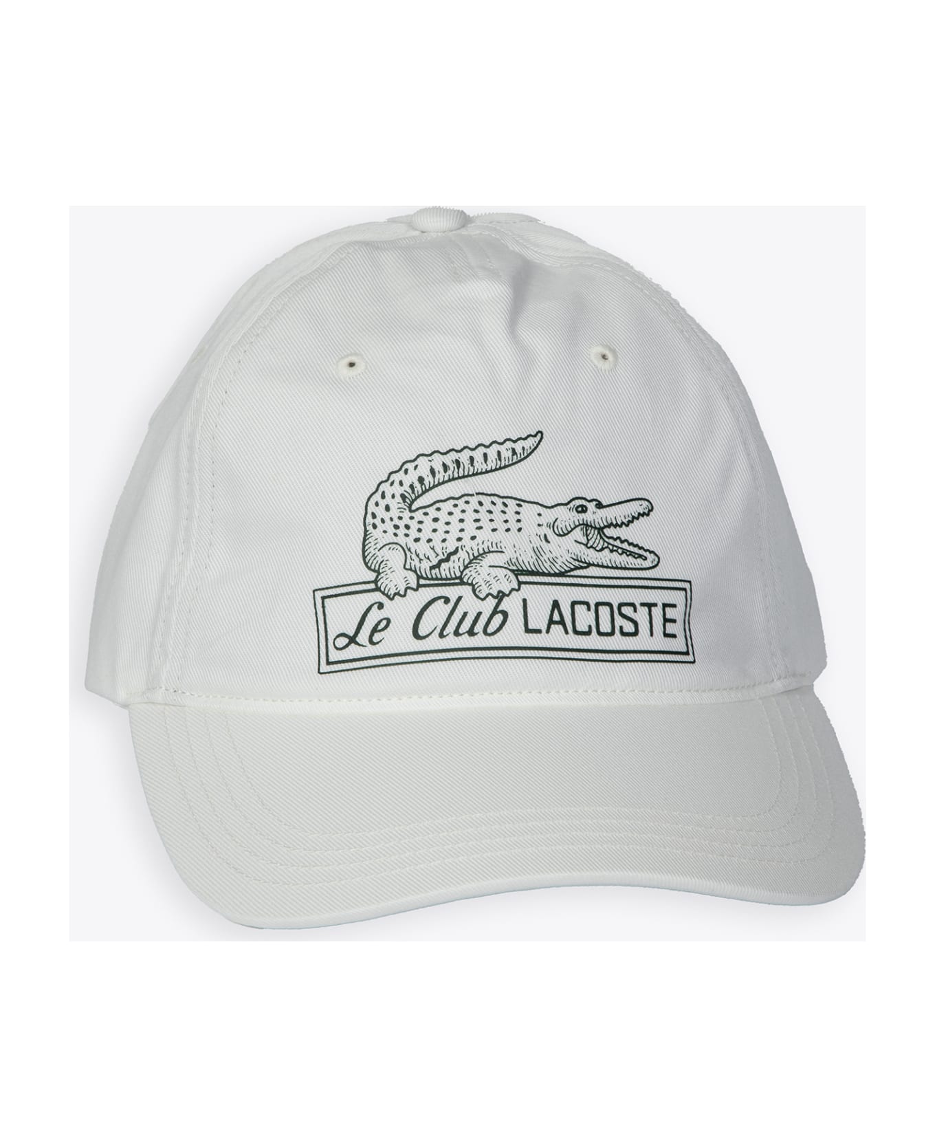 White cotton cap with front logo print and text. Metal buckle adjustable closure. Composition: 100% cotton.