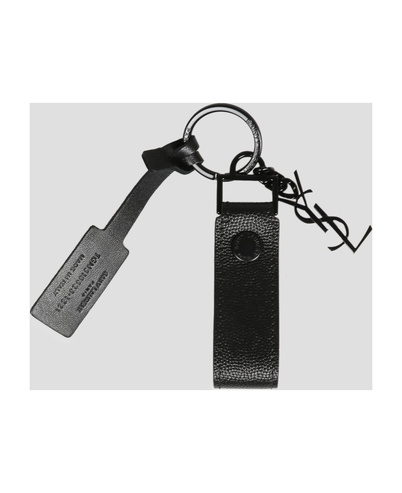 Saint Laurent Cassadre keyring, in grained leather with metal YSL charm. - W:13. 5 CM