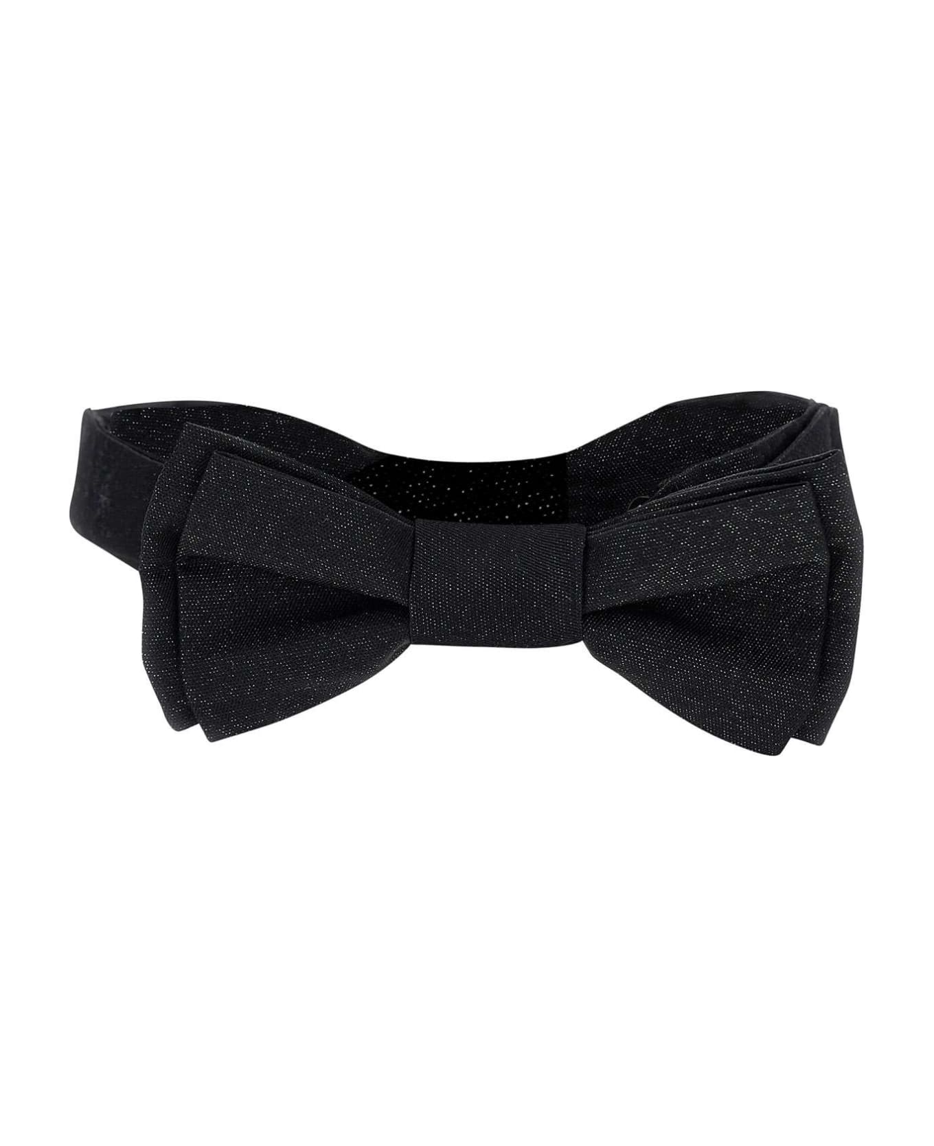 Paul Smith bow silk blend tie, black on silver micro glitter pattern, adjustable hook fastening. Made in Italy. One size. Dry cleaning is recommended for garment care.