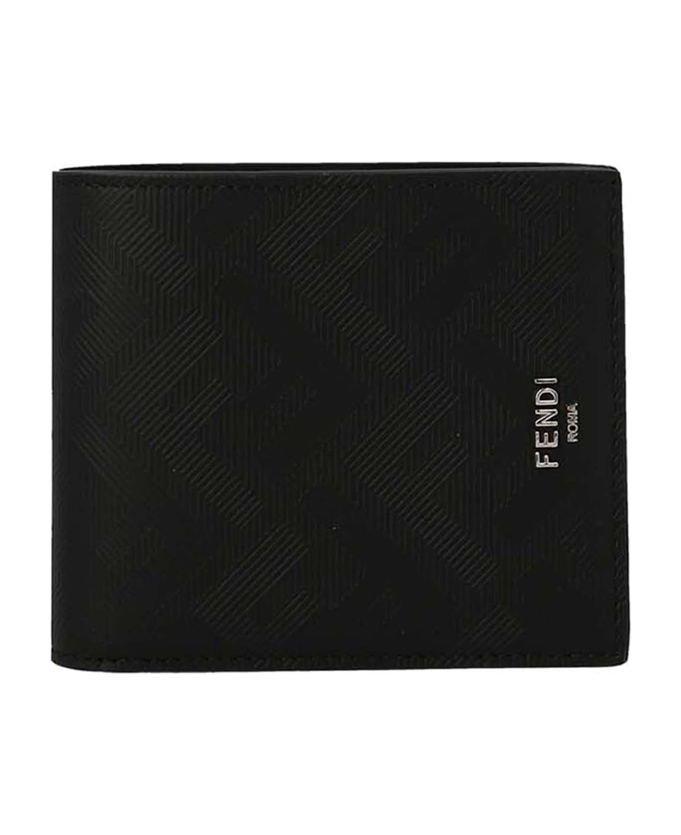 Wallet with 8 card slots inside and 2 bill compartments, made of black leather with embossed FF print, red leather inner details, and a metal logo with palladium finish. Composition: 100% calf leather (bos taurus)