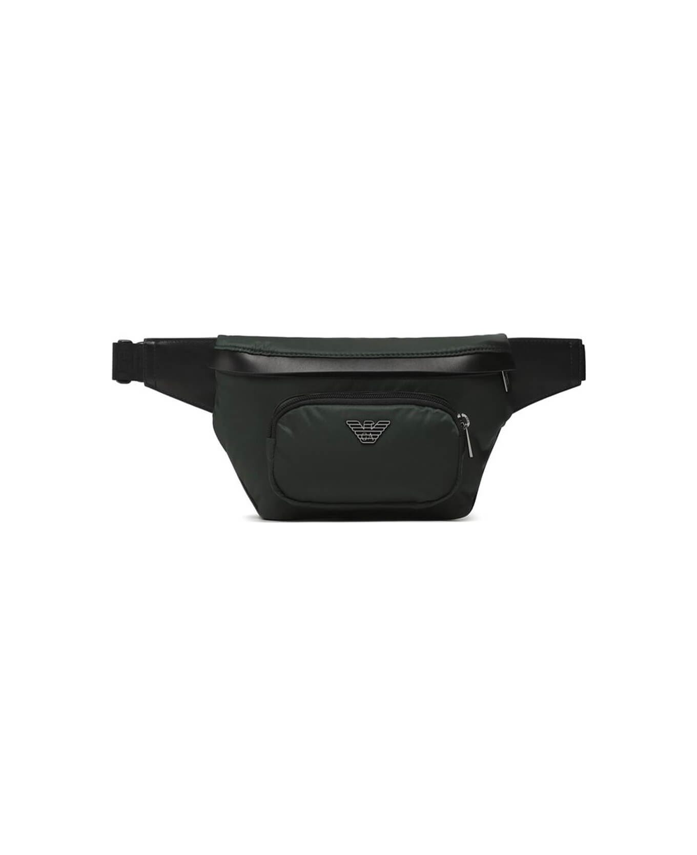 Emporio Armani belt bag made of green nylon, featuring two compartments with zip and front logo. Adjustable fabric belt, measures 37x18. 5x10 cm. Composition: 100% polyamide.
