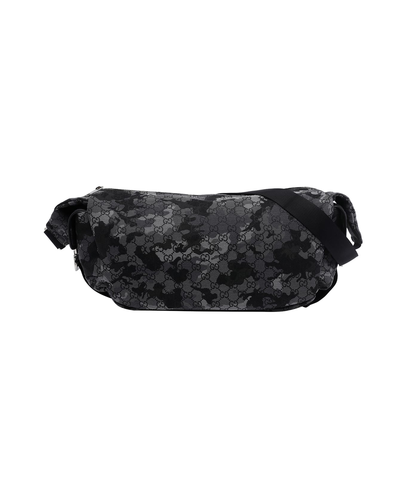 Gucci black crossbody bag, GG logo, zip closure, inner pocket with zip, 2 lateral pockets with magentic closure, adjustable shoulder strap Composition: 100% Fabric