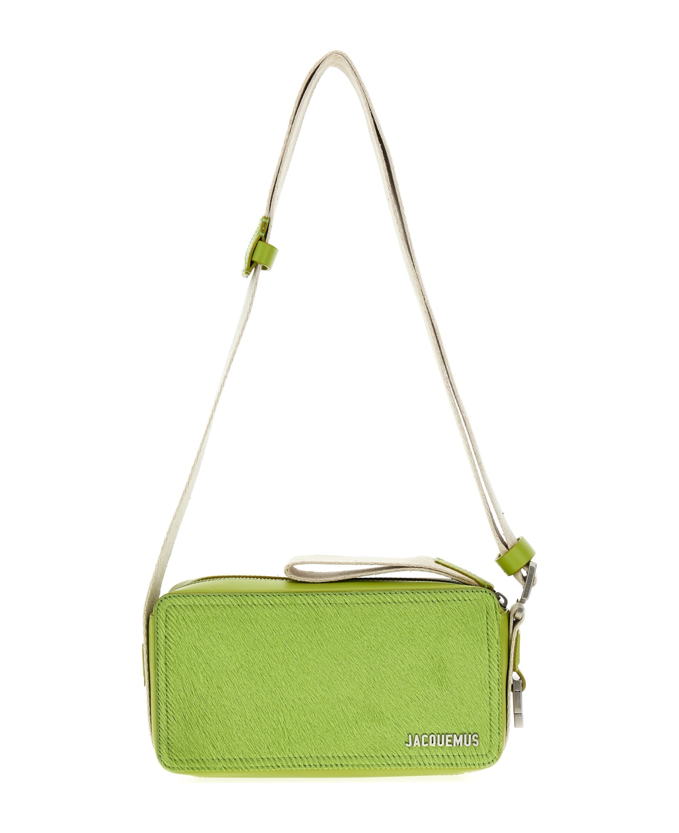 Le Cuerda Horizontal' leather crossbody bag with adjustable shoulder strap, zip closure, patch pocket, canvas details and silver metal access. Composition: 100% cowhide