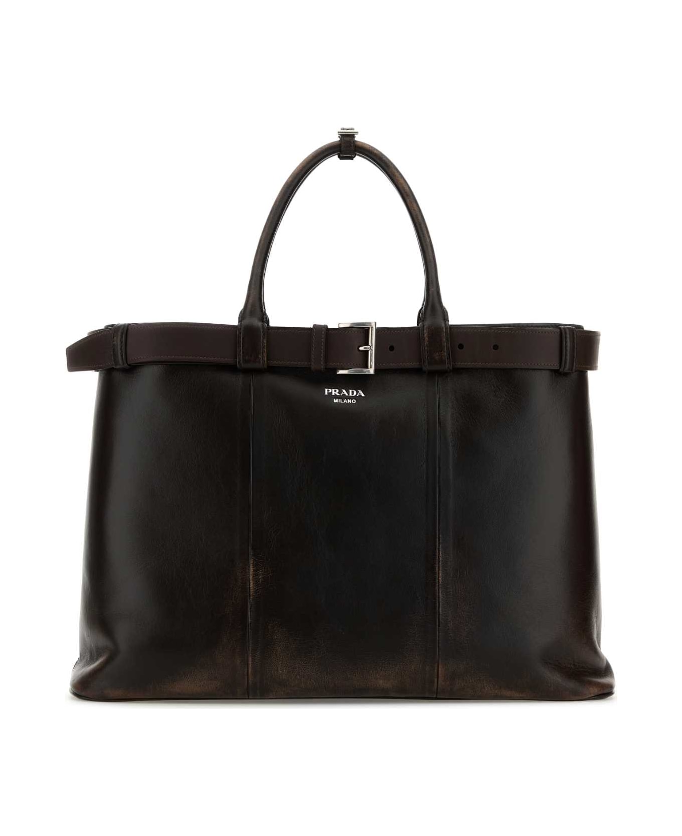 Dark Brown Nappa Leather Large Prada Buckle Shopping Bag from Prada