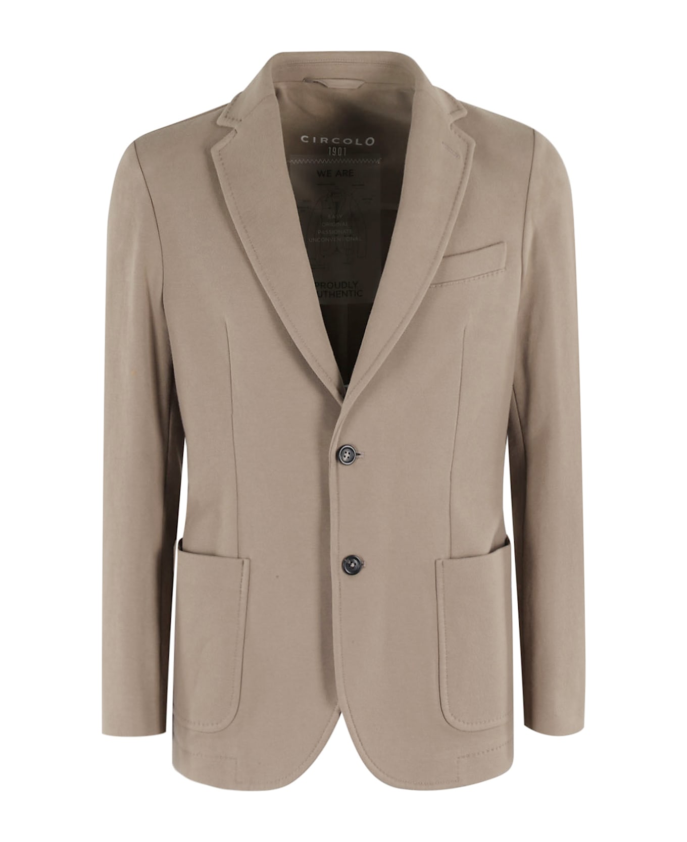 Jersey Jacket - Circle 1901 - Rope color - Stretch cotton fleece fabric - Lapel neckline - Long sleeve with buttons at bottom - Front patch pockets - Flush chest pocket - Double back slit - Single breasted two button closure.