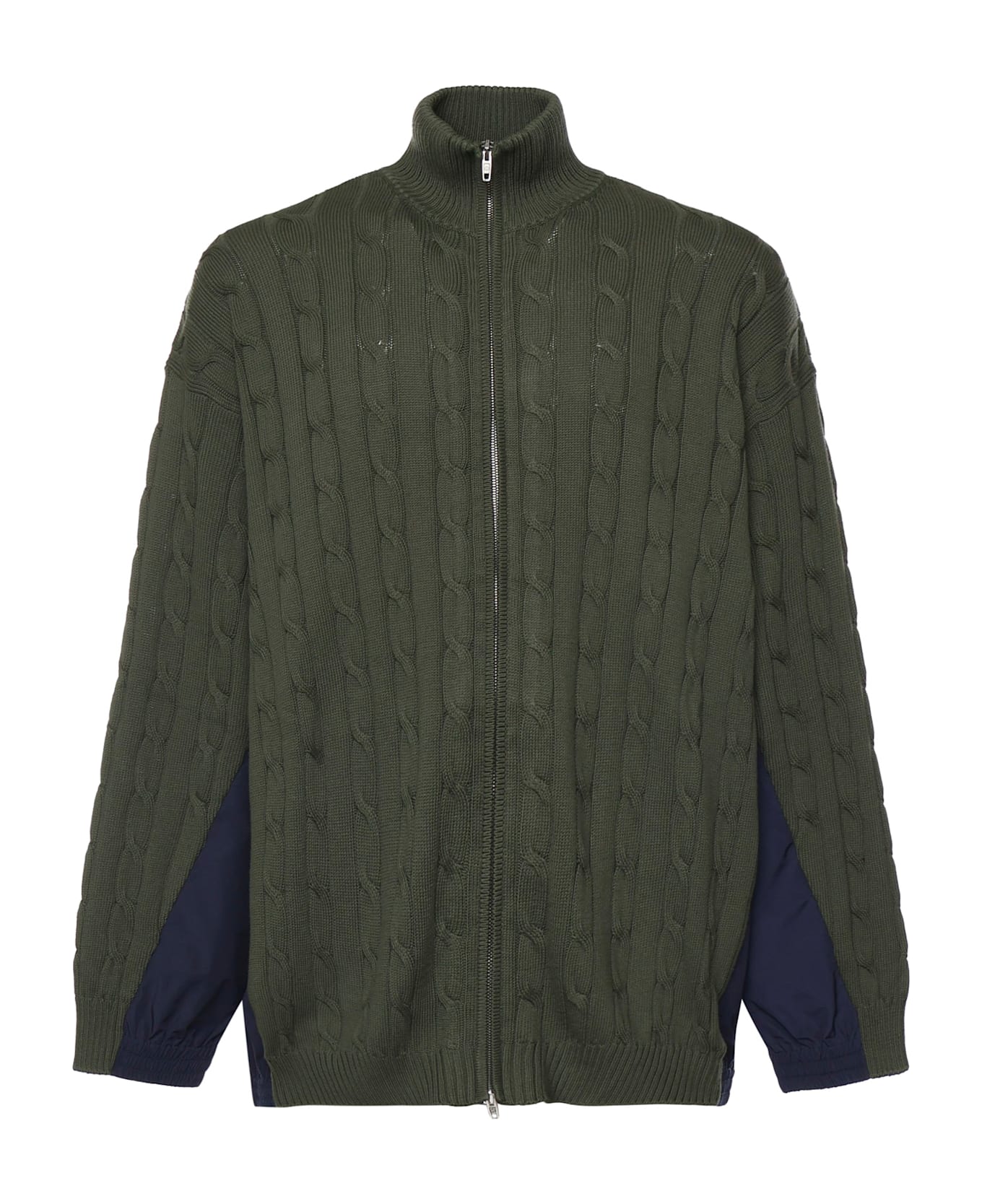 - Front zip closure - High neck - Long sleeves - Ribbed trim - Made in Italy - Size shown is L - Color: Khaki, Blue, Beige