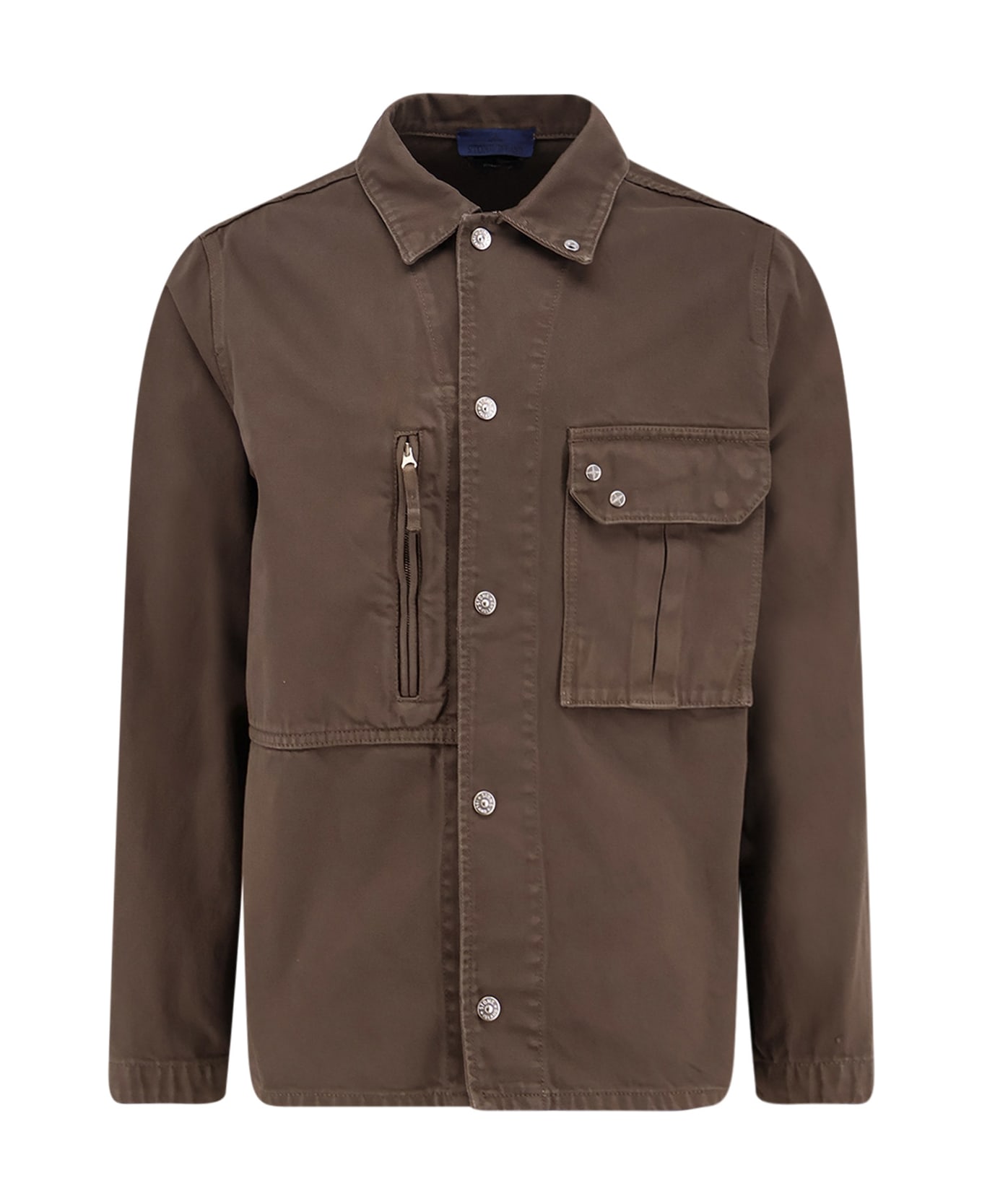 Metal button closure Flap pocket on the front Zip pocket Removable logo patch on the left sleeve Unlined 100% cotton SKU: L1S141200001S0J24V007C