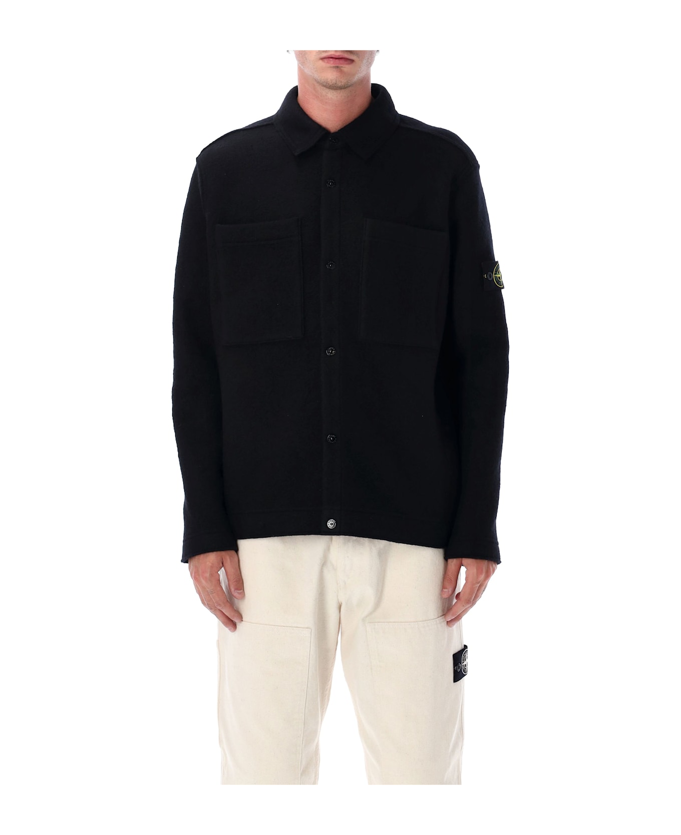 Crafted From Responsibly Sourced Felted Wool, This Stone Island Overshirt Merges Knitwear Softness With Workwear Structure. Designed In A 12-gauge Knit, It Features Chest Patch Pockets, Snap Fastening, And An Oversized Silhouette For Modern Comfort. The Tonal Stone Island Badge On The Sleeve Completes This Elevated Layering Piece. Felted Rws (responsible Wool Standard) Wool