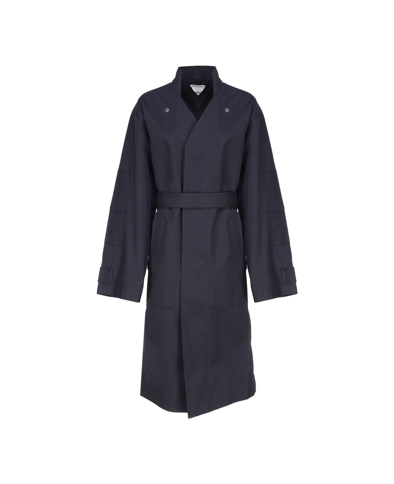 Grey Bonded Wool And Cotton Coat from Bottega Veneta -Closure with snap buttons -Comfortable fit -Matched belt -Made in Italy -Colour. Grey -54% Wool, 46% Cotton