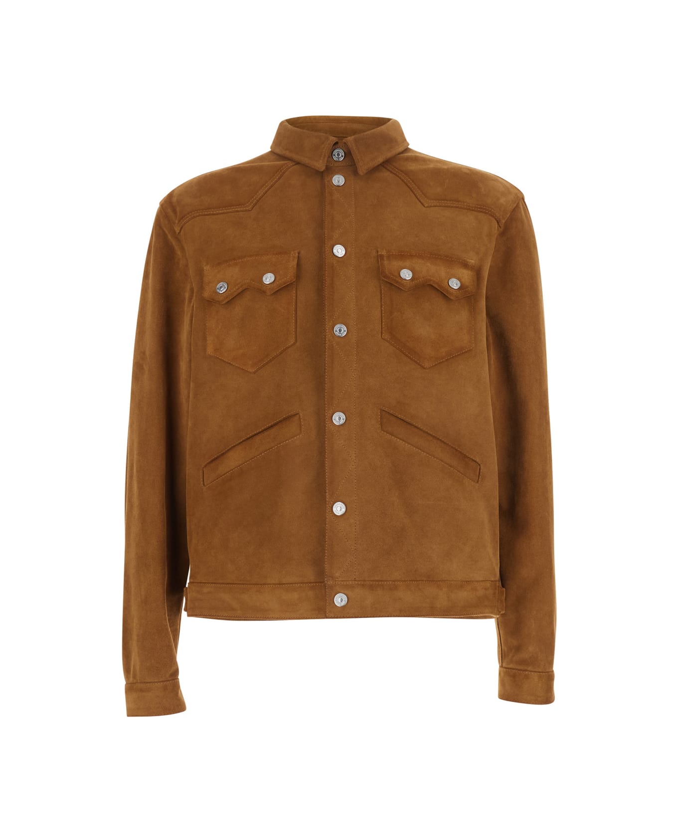 Jacket Brown Classic collar Long sleeves Front button closure Two front patch pockets with buttons Two front welt pockets Buttoned cuffs Straight hem Suede Regular fit