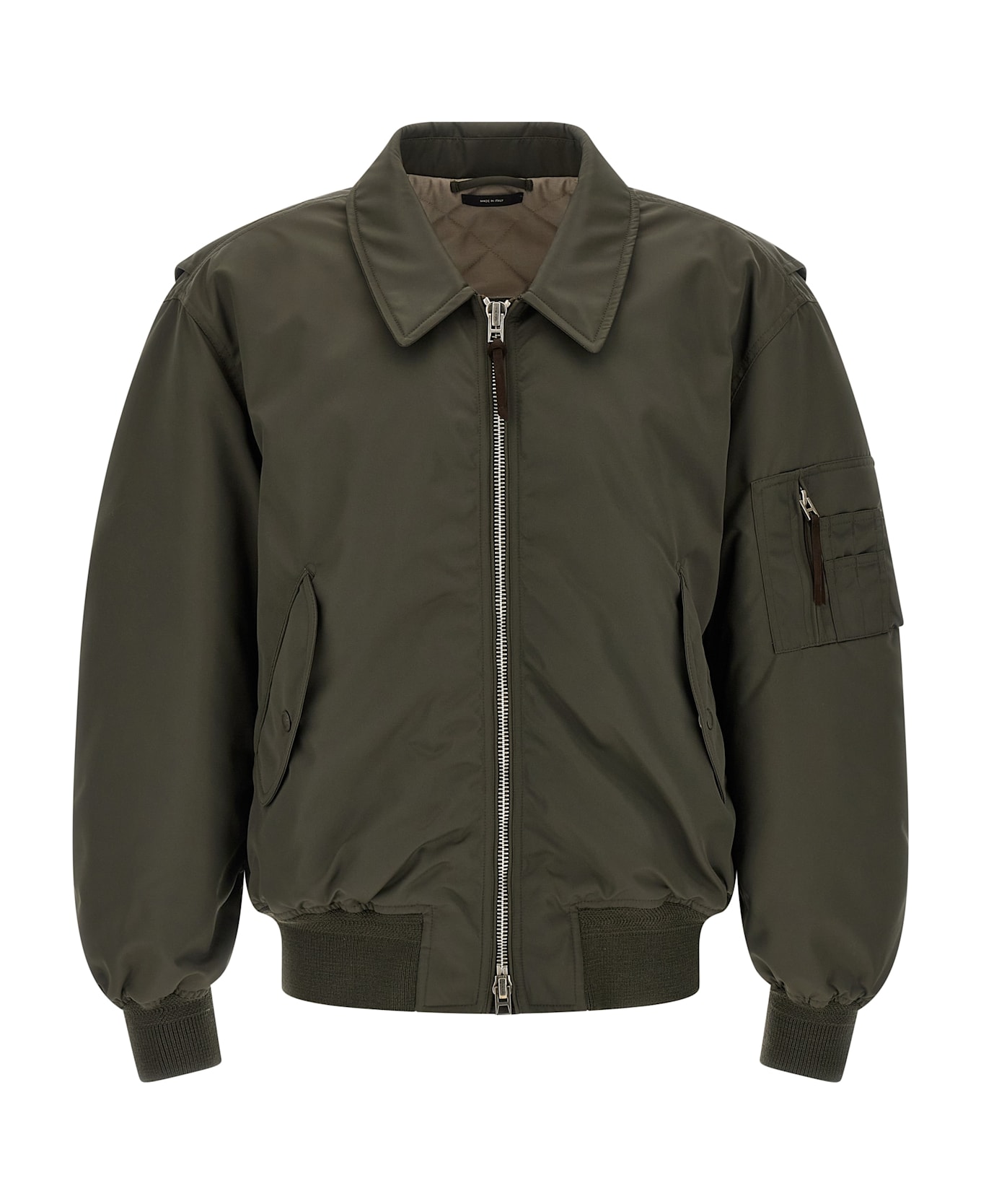 Flight' satin nylon bomber jacket, cupro blend and slightly padded quilted cotton lining, shirt collar, front zip closure, pockets, long sleeves with stretch knit cuffs, stretch knit band on the hem.