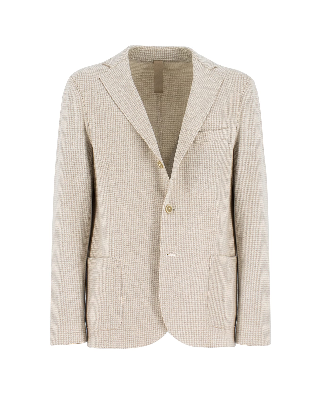 Soft single-breasted jacket, made in Italy by master craftsmen. The slightly irregular texture with this melange pattern gives the outerwear a three-dimensional effect. The side pockets and front pocket complete this garment, making it suitable for any style.