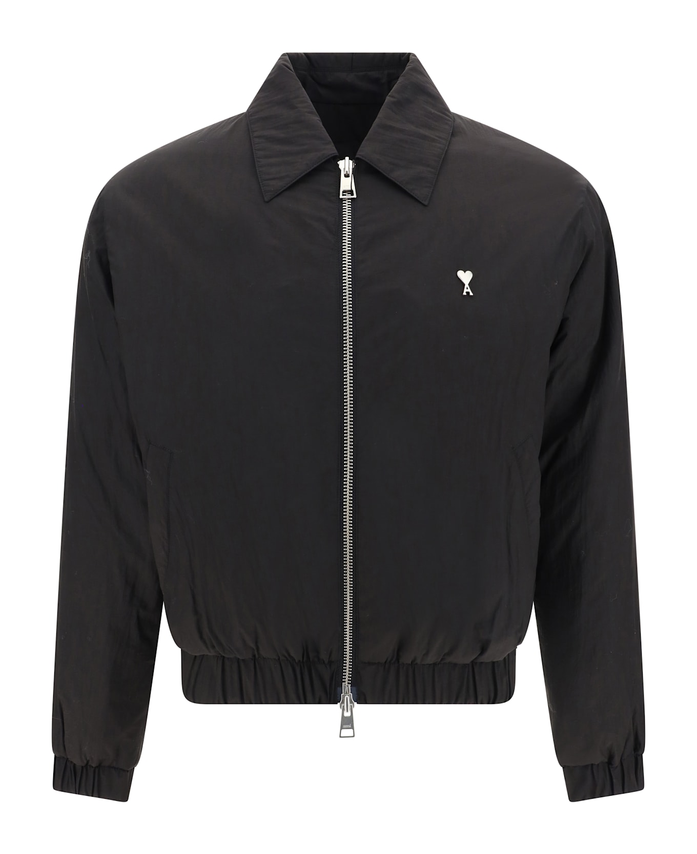 Jacket by ami paris, classic collar, front closure by double-slider zipper, two side welt pockets with flap, elasticized hem, elasticized cuffs, three-dimensional plaque with iconic brand logo, monochrome pattern, regular fit. Composition: 100% % Polyamide