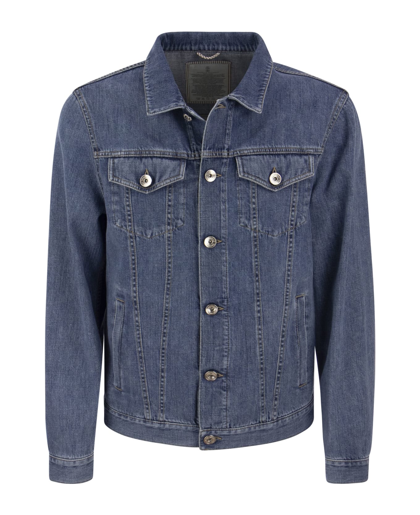 The iconic style of the four-pocket jacket is enhanced by the high-quality materials of Brunello Cucinelli. The refined denim of Japanese origin 9. 5 OZ is a very light and comfortable fabric. The characteristic metal buttons and chest pockets complete the garment that offers a regular fit and has an unlined structure. The pure cotton denim is characterised by a balanced weight that makes the garment comfortable to wear. The unlined structure of the garment favours lightness and comfort when worn. - Unlined - Regular fit - Button fastening DESIGNER ID: M0Z376844 C1470 Composition: 100% Cotton Lining: 100% Cotton