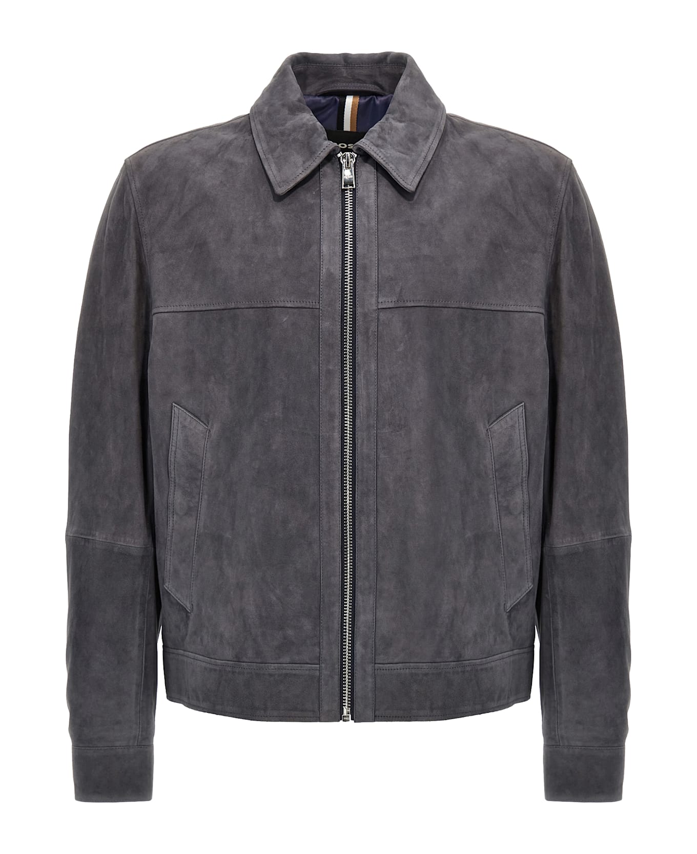 'Malbano 4' leather jacket with back metal logo, collar, zip closure, pockets, long cuffed sleeves. SUSTAINABLE: product made with leather from responsible farms. Composition: 100% goat leather