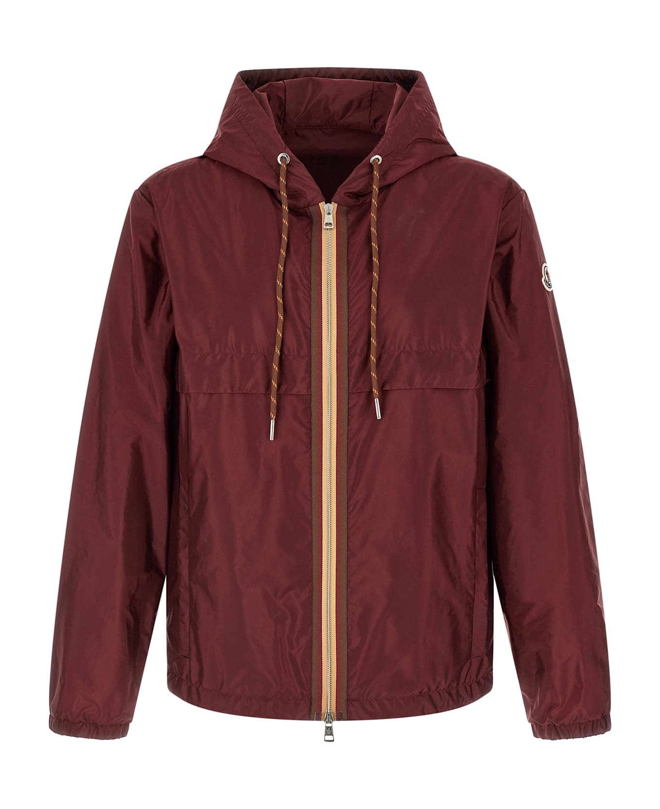 'Nidge' jacket in water-repellent technical nylon, unlined, adjustable hood, high neck, front zip closure with tricolor grosgrain piping, pockets, long sleeves with elastic cuffs, drawstring on the hem.