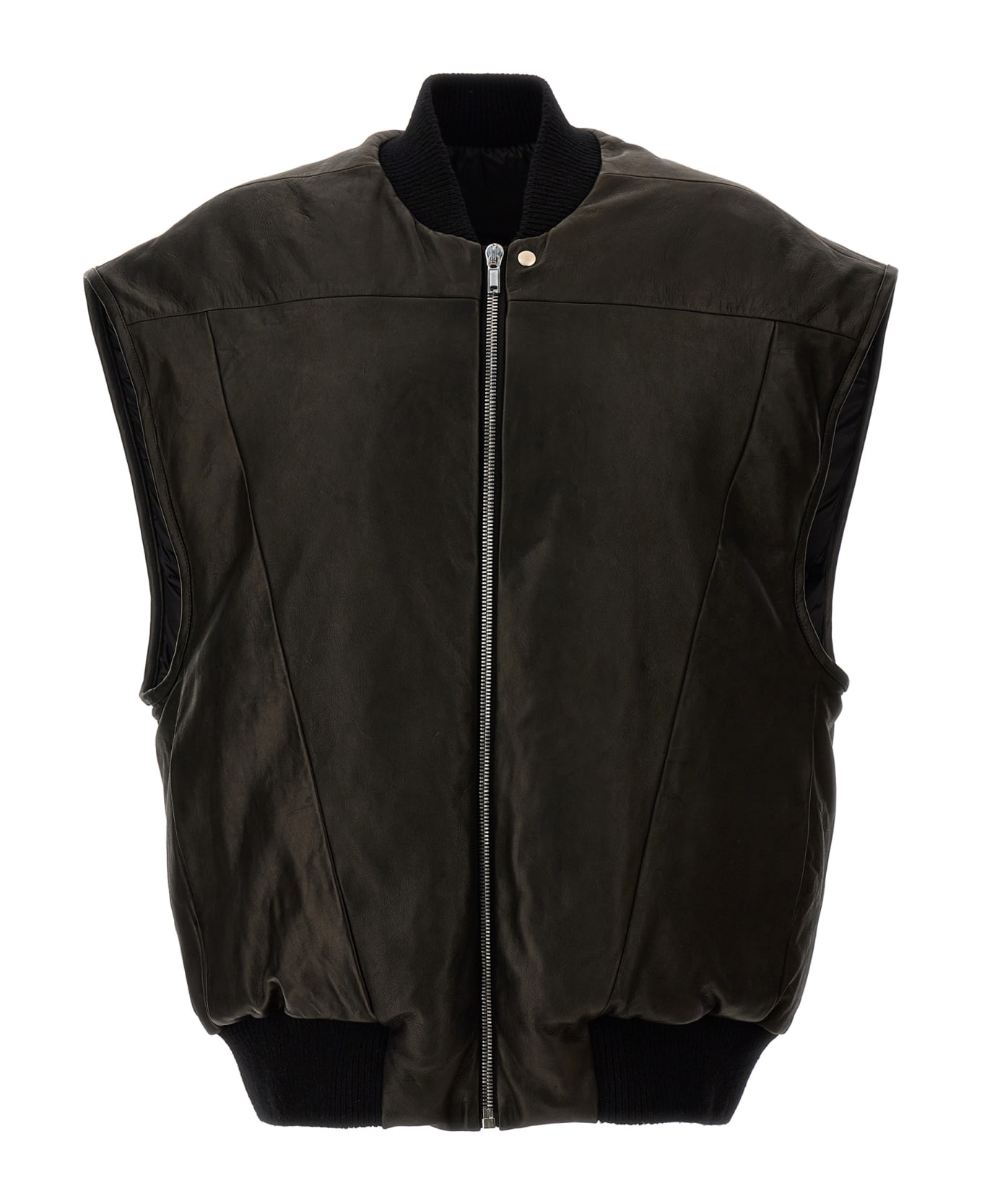 'Jumbo flight' nappa vest with front zip closure, ribbed detail on the neck and waist.