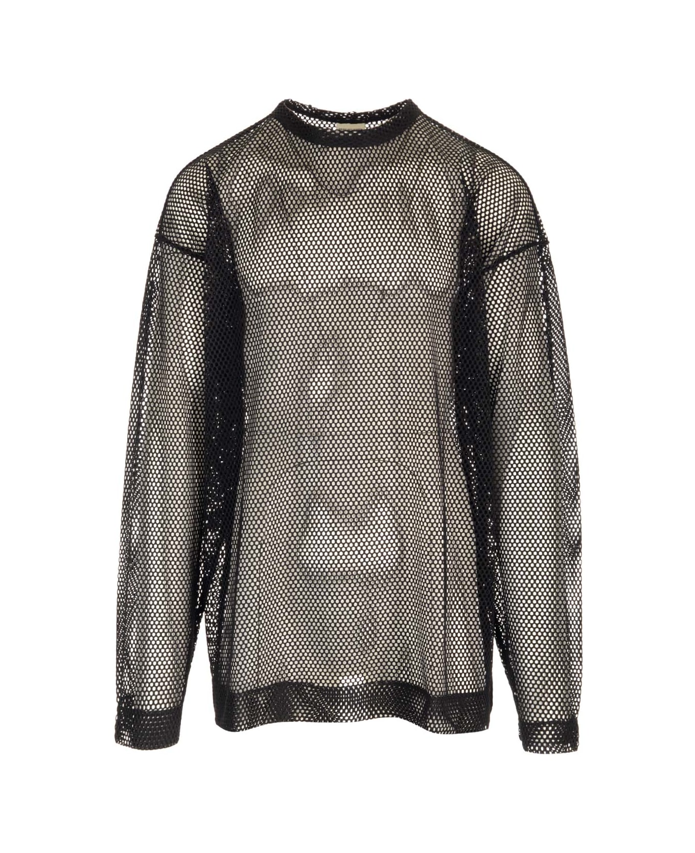 Black mesh "Hegland" sweater from Dries Van Noten, with crew neck, dropped shoulder, oversize fit.