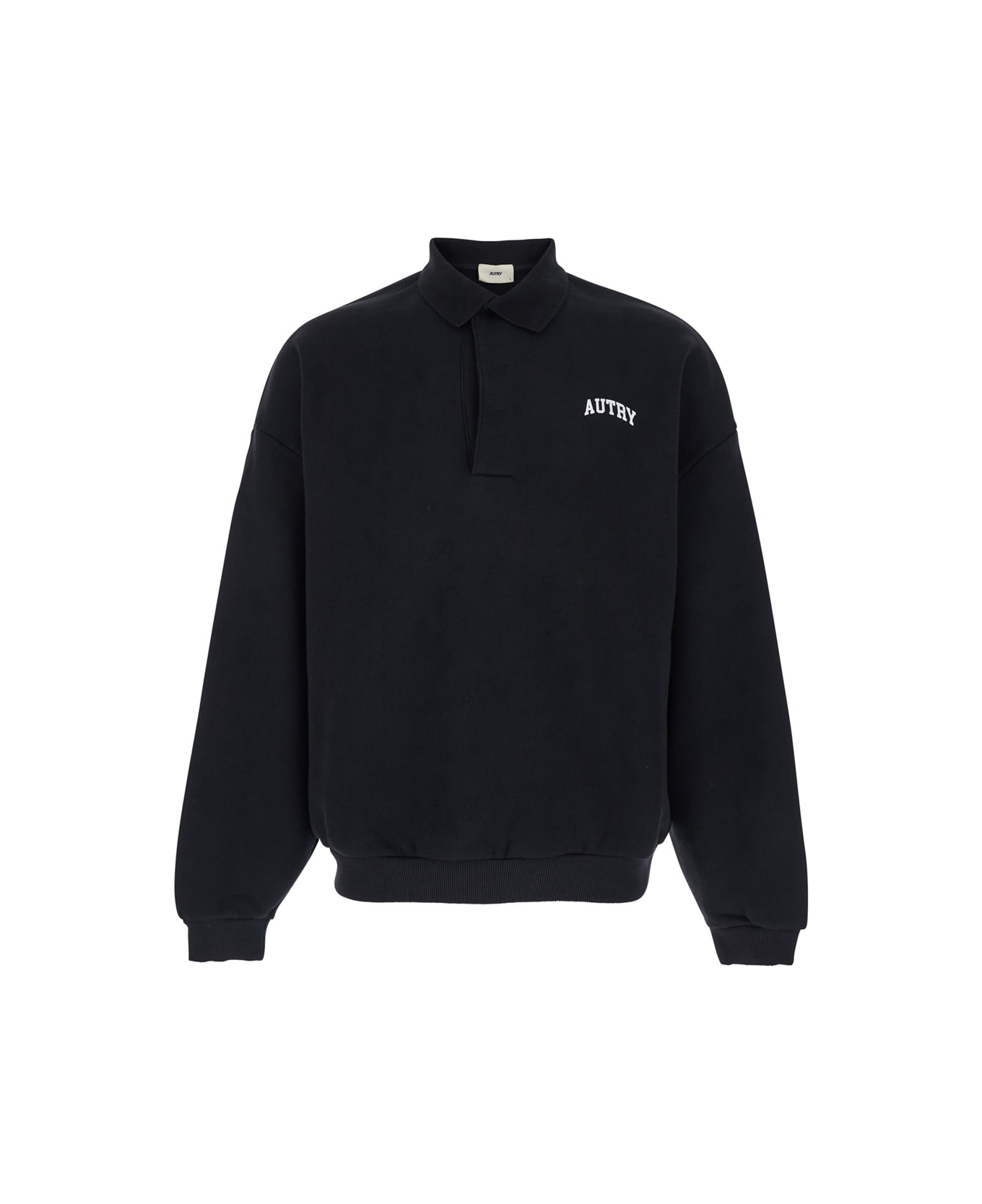 Black Sweatshirt With Polo-style Collar And Logo On The Front In Cotton Man