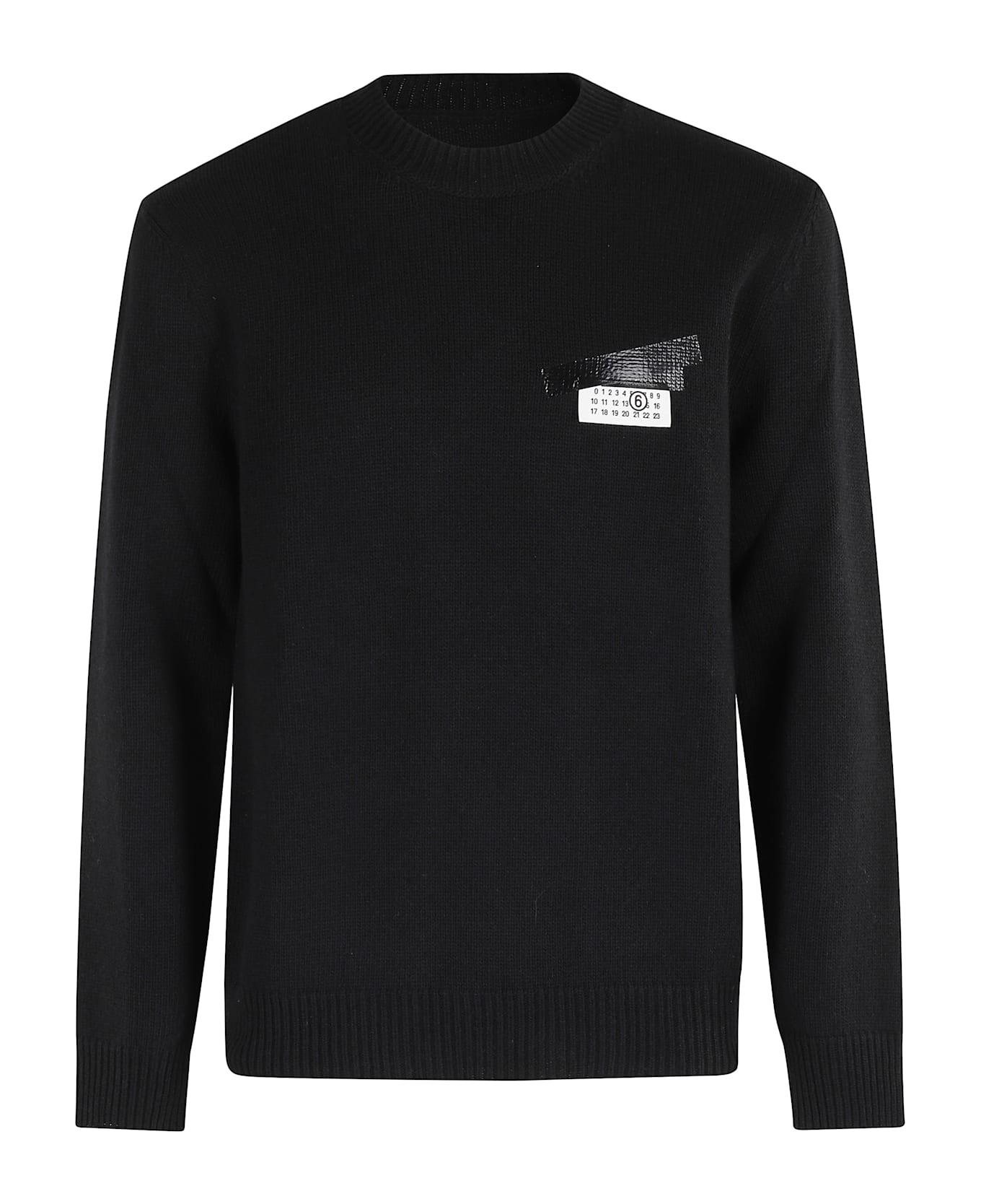 Sweater -MM6 Maison Margiela -Black color -Long sleeve -Neckline -Logo on chest