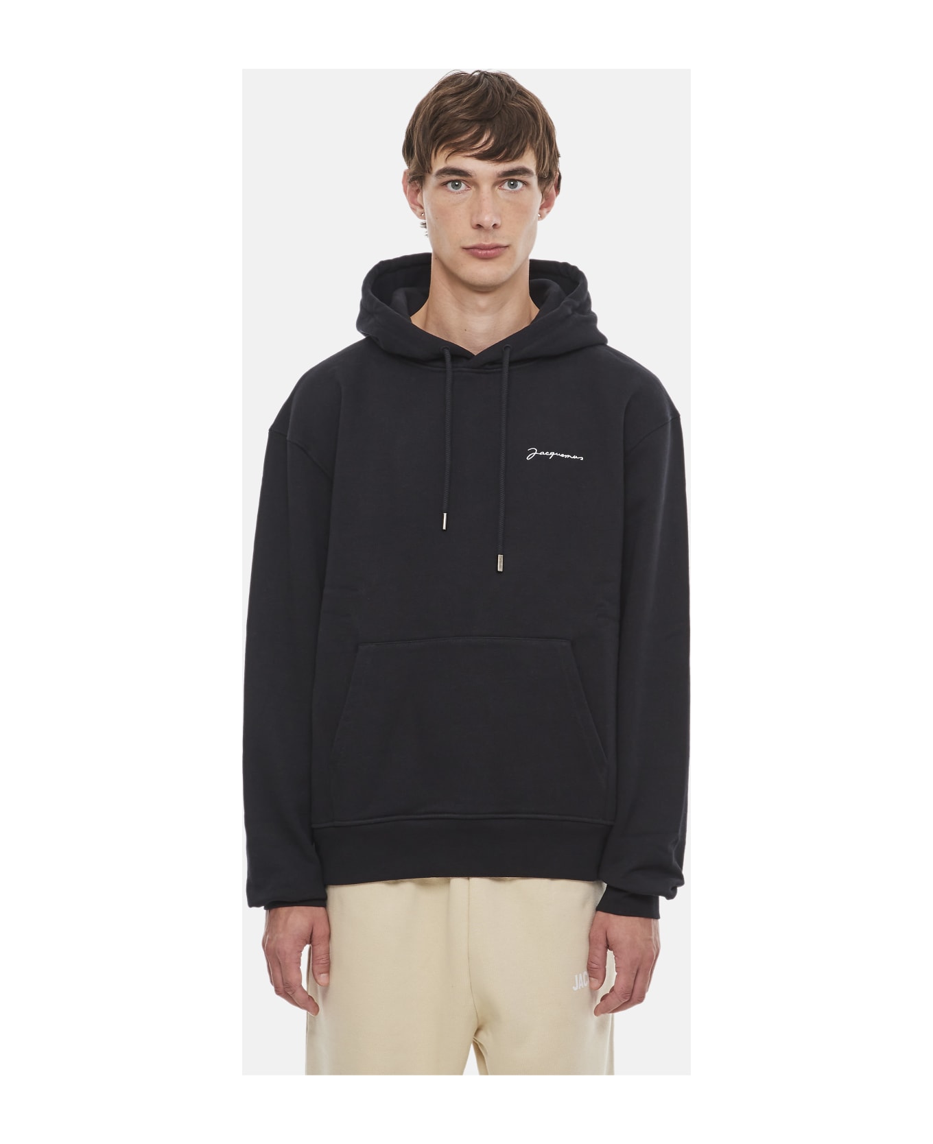 Adjustable drawstring hood. Round square metal engraved cord tips. Embroidered logo on the chest. Kangaroo pocket. Ribbed cuffs and hem. Regular fit. Color: black. Composition: 100% Organic Cotton