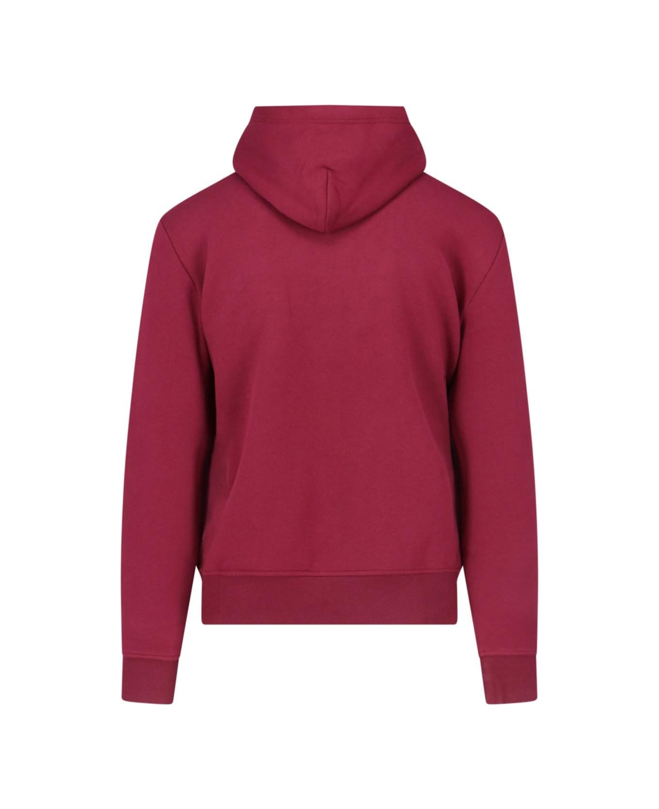 Polo Ralph Lauren hoodie in burgundy cotton blend with white details, drawstring, front logo patch, maxi front pocket, side logo embroidery, side logo patch, ribbed trim, straight hem.