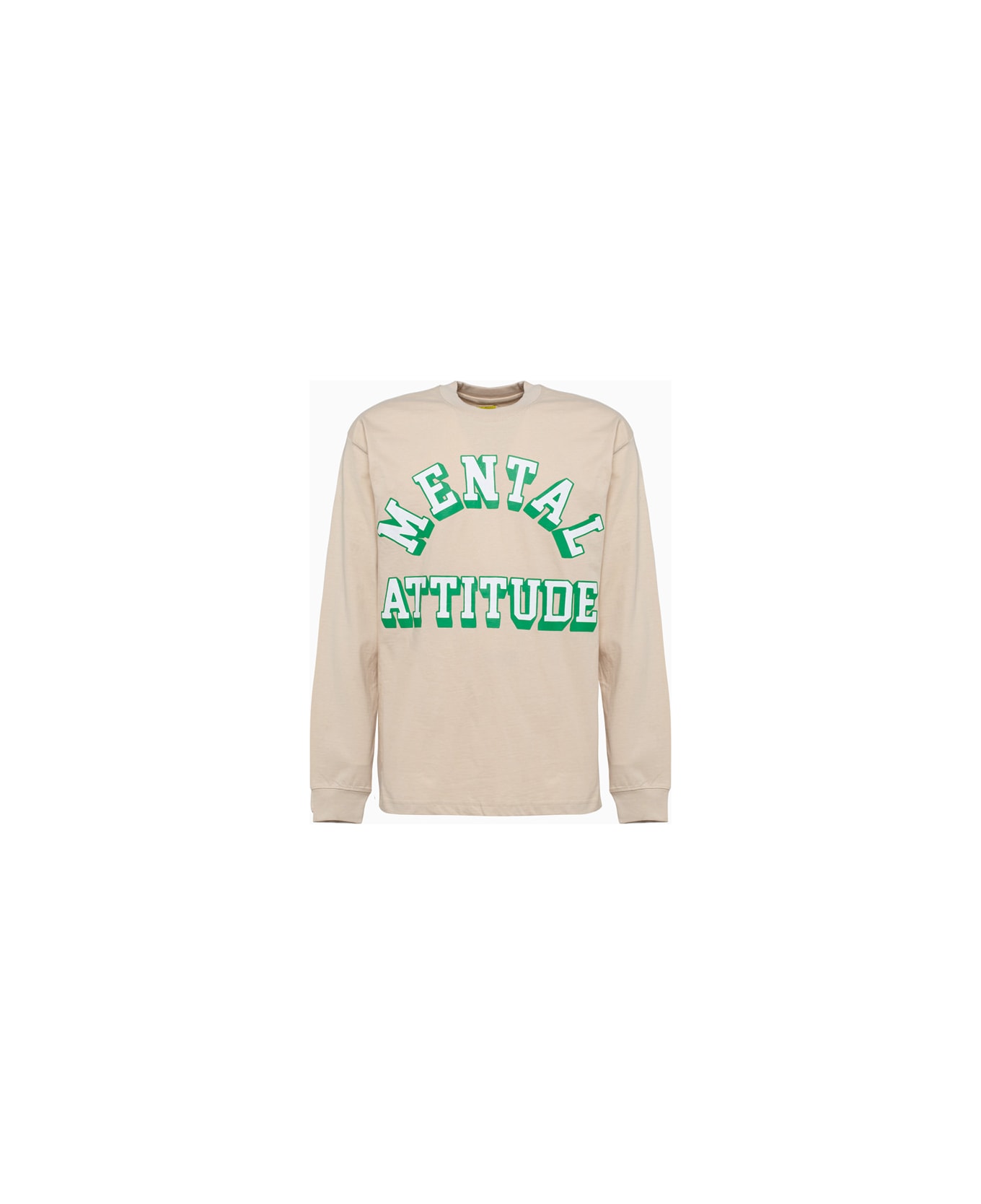 solid color cotton scoop neck t-shirt. long sleeves, ribbed cuffs. contrast market mental attitude print at front and back. regular fit. composition: 100% cotton.
