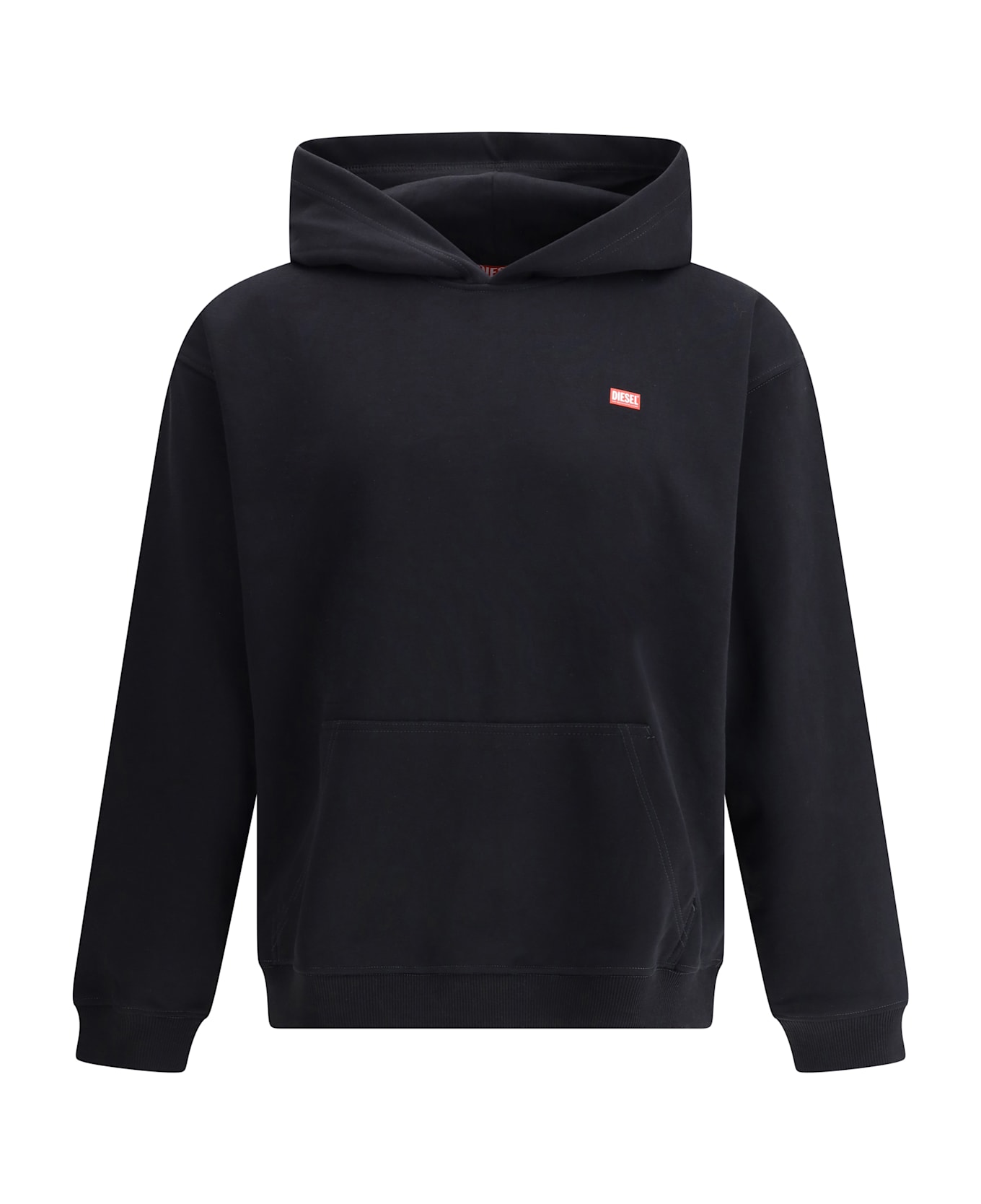 Diesel's cotton s-boxt-hood-r11 hoodie combines minimalist style with an original touch. the front design is basic, decorated only with a small logo on the chest, while the back surprises with a photographic print of the fashion show set, adding a distinctive element. the kangaroo pocket on the front offers practicality, while ribbed cuffs and hem provide a comfortable, structured fit.
