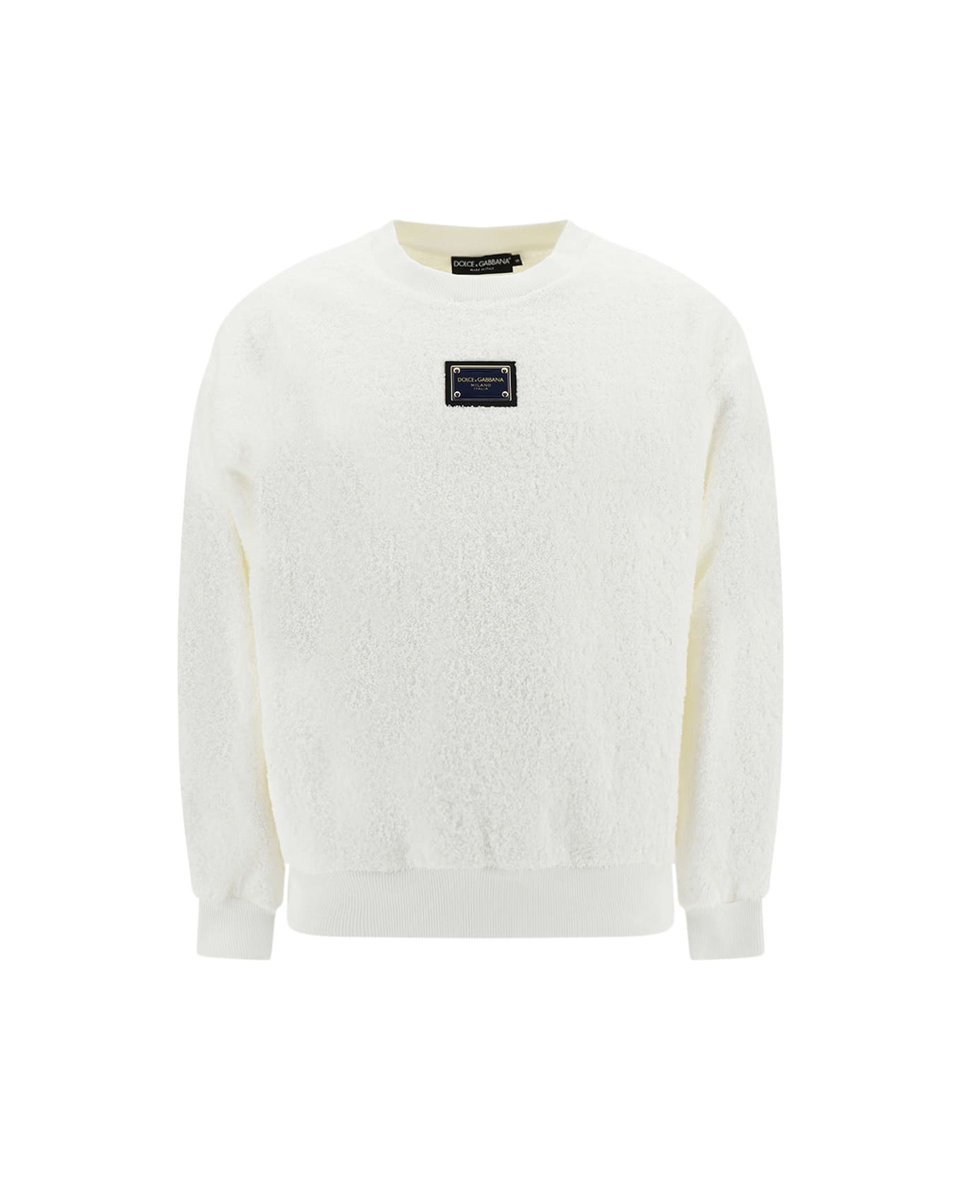 Cotton sweatshirt by dolce&gabbana, ribbed crew neck, spongy effect design, elastic ribbed cuffs, ribbed hem, monochrome pattern, metal plaque with iconic brand d&g monogram engraved and applied on front, regular fit. Composition: 100% % Cotton