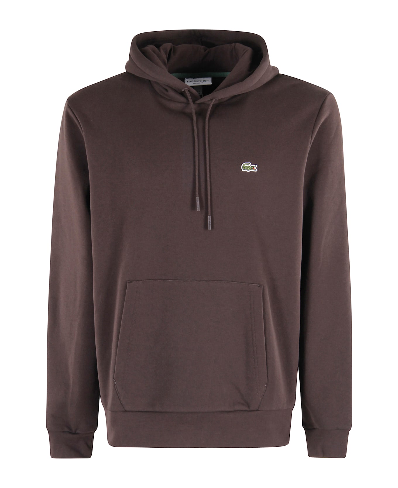 Sweatshirt - Lacoste - Brown color - Adjustable drawstring hood - Long sleeves - Front pocket - Upper logo patch