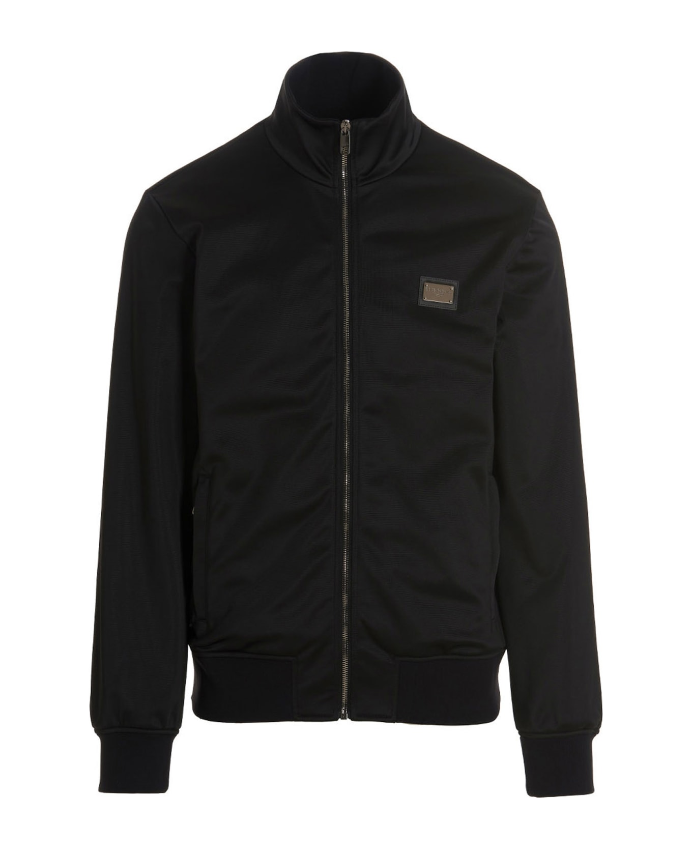 Tech fabric track sweatshirt, with high neck, a zip closure, pockets, long cuffed sleeves, and a front logo plaque. Composition: 100% polyester