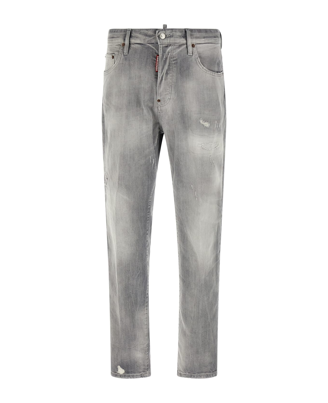 '642' used-effect stonewashed stretch cotton denim jeans, contrast stitching, straight leg, front button closure, five pockets, back leather logo tag. Composition: 98% cotton, 2% elastane