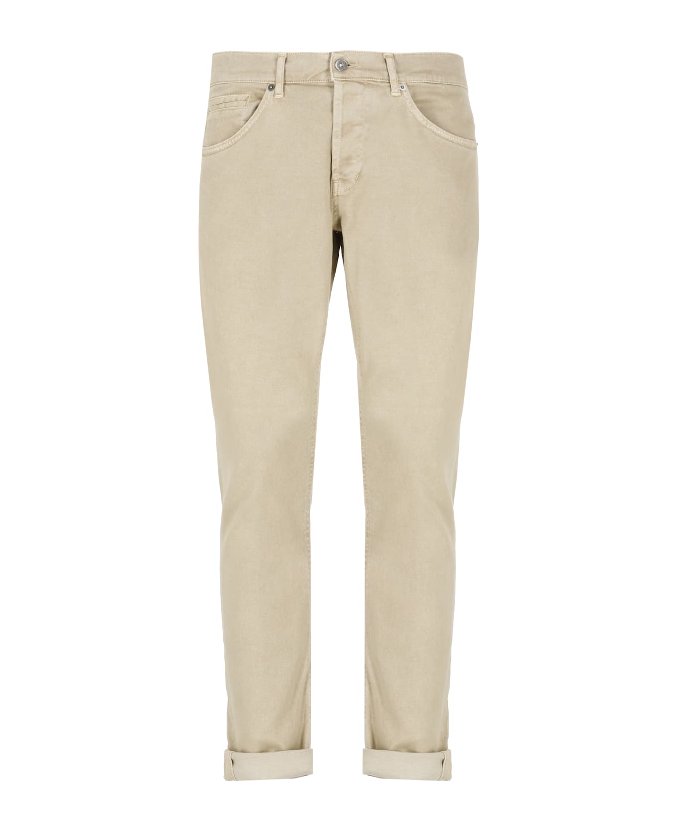 - Beige Dond Up cotton jeans for man - Belt loops - Five pockets - Front buttons fastening - Rear contrasting colour embroidery - Turn-up at hem