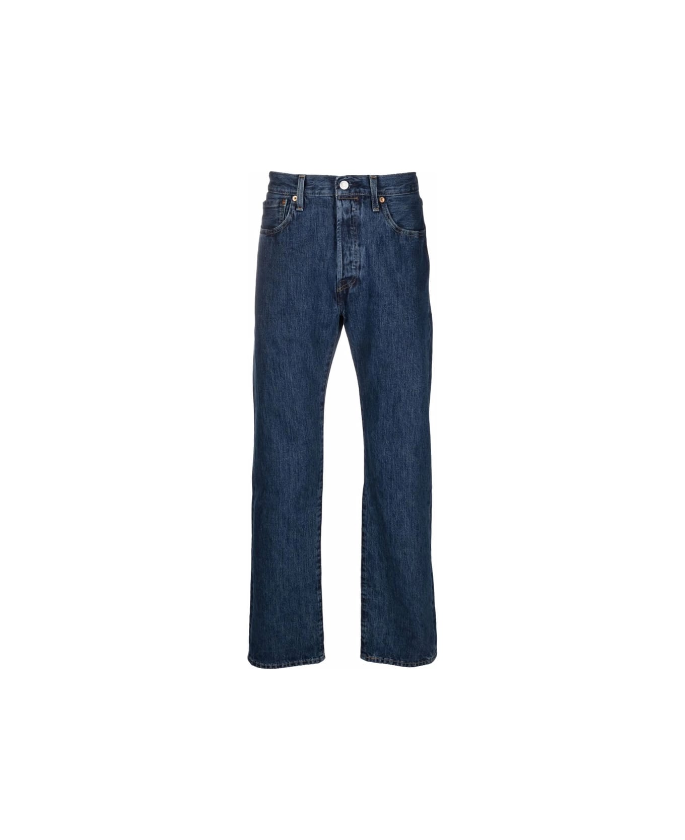 blue cotton denim straight leg logo patch to the rear belt loops front button and zip fastening classic five pockets