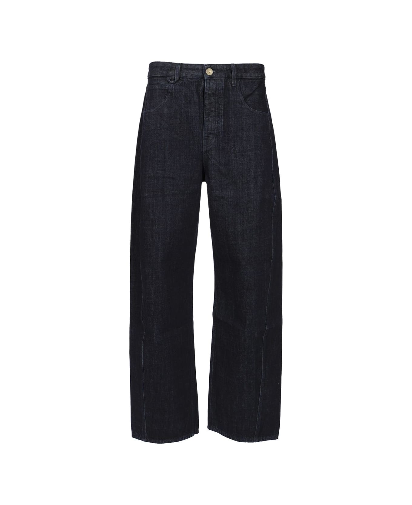 Curved fit jeans Mid rise Dark blue cotton denim Long curved leg Five pockets Button fly Contrast corozo buttons J loop Embroidered patch on the back Laser printed 50s logo Composition: DOUBLURE:65% POLYESTER 35% COTON PRINCIPAL:100% COTON