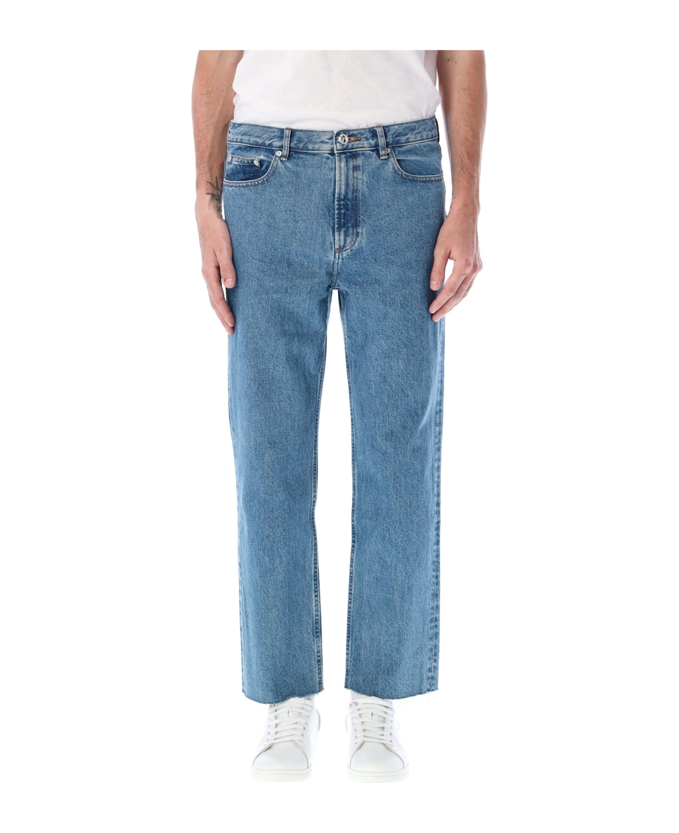 Washed Indigo Cotton Rudie Jeans By A. p. c. Featuring: - Low-rise - Button And Zip Fastening - Belt Loops - Classic Five Pockets - Washed Denim - Straight Leg - Frayed Hem