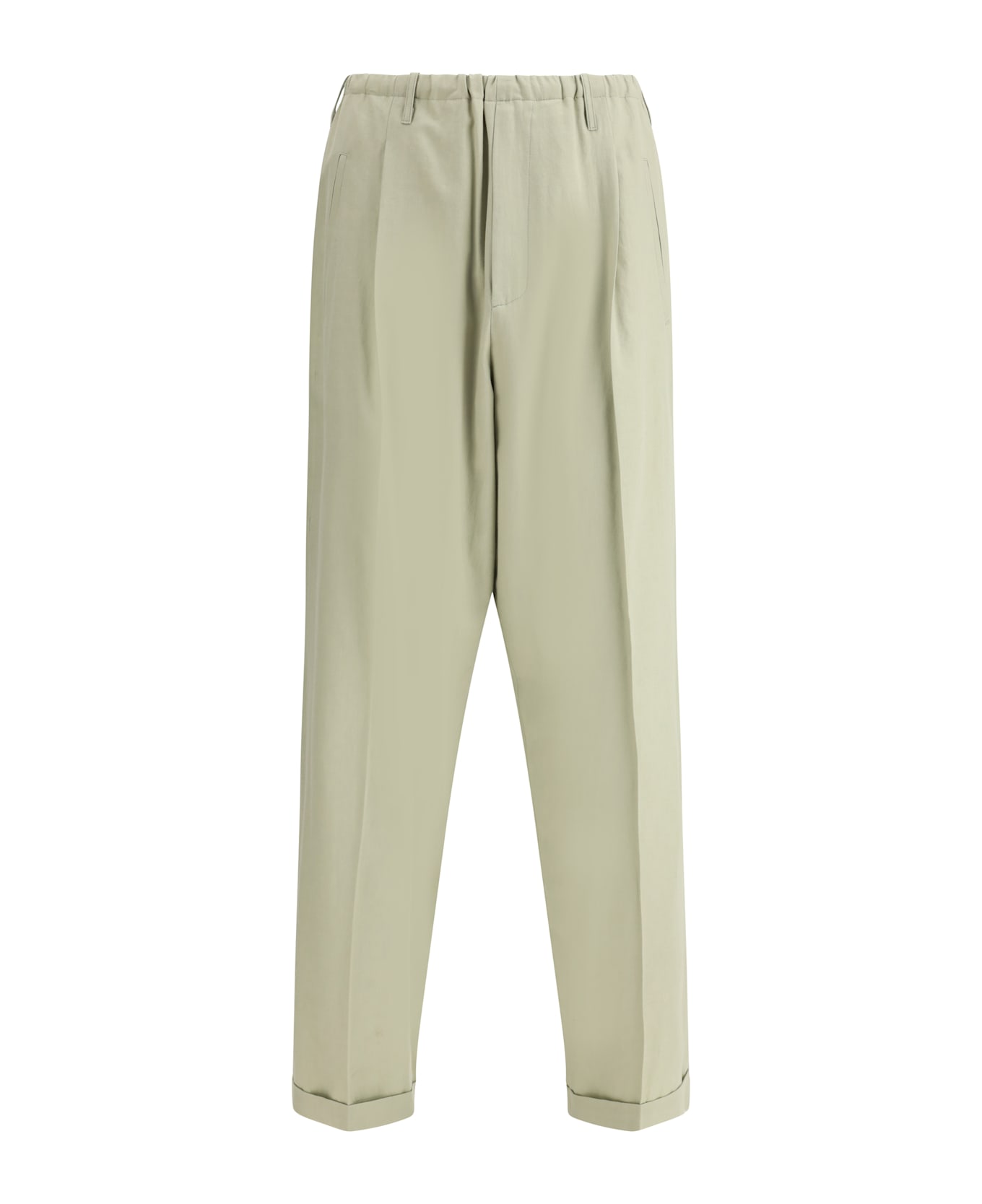Magliano's cotton people pants combine comfort and style. they feature a front zipper closure and an elasticized waistband, providing a comfortable and versatile fit. belt loops allow you to add a personal touch with a belt of your choice. two side welt pockets and two back welt pockets with pearl buttons offer elegance and functionality. the turned-up hem adds a stylistic detail, giving the pants a contemporary, polished look.
