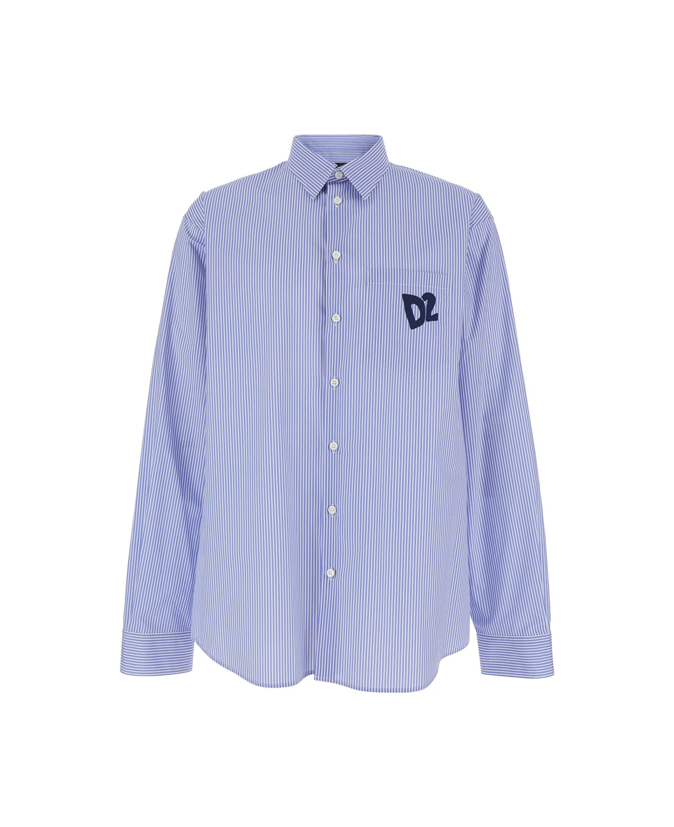 Blue Shirt With All-over Striped Motif And Applied D2 Logo On The Chest In Cotton Man