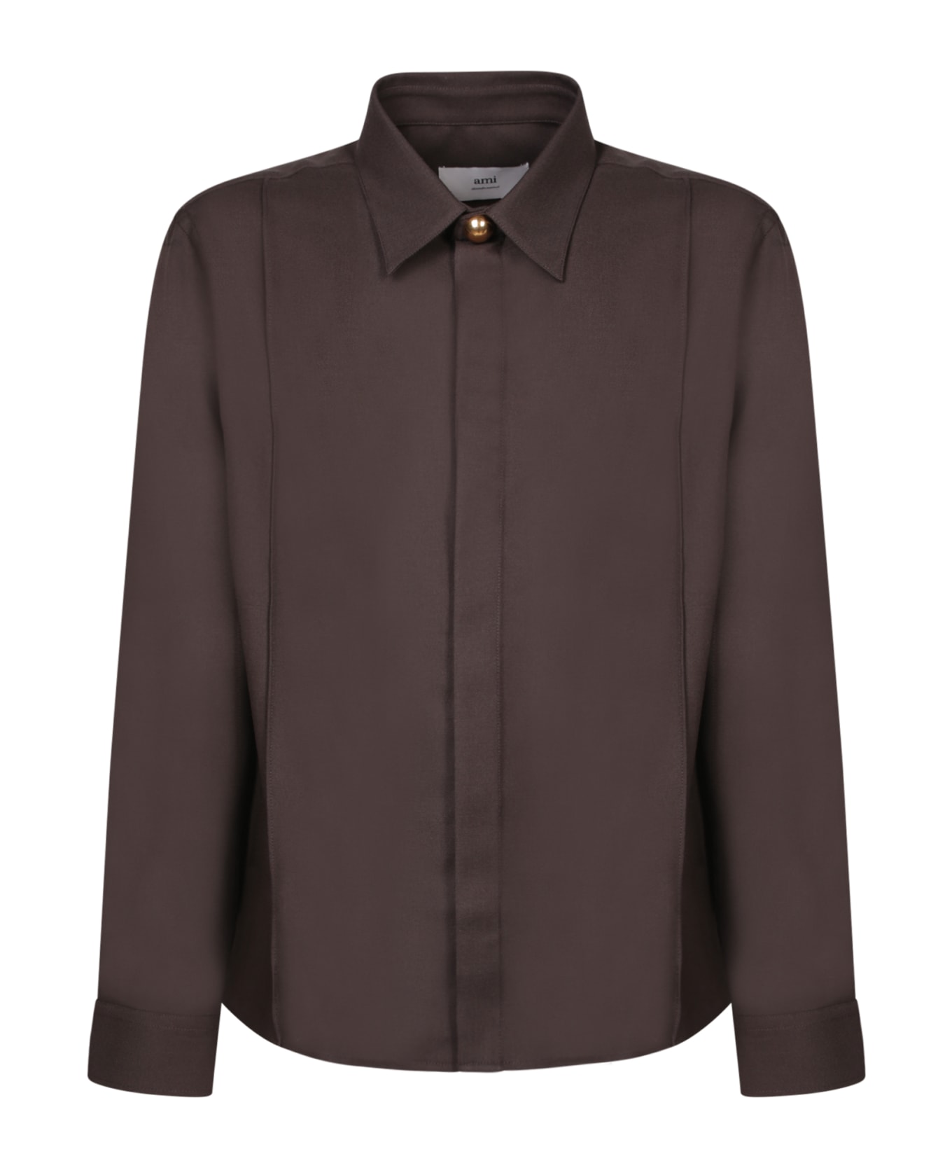 This elegant brown shirt from Ami Paris features a sophisticated design with front pintucks that define the cut. The classic collar and golden buttons add a touch of refinement.