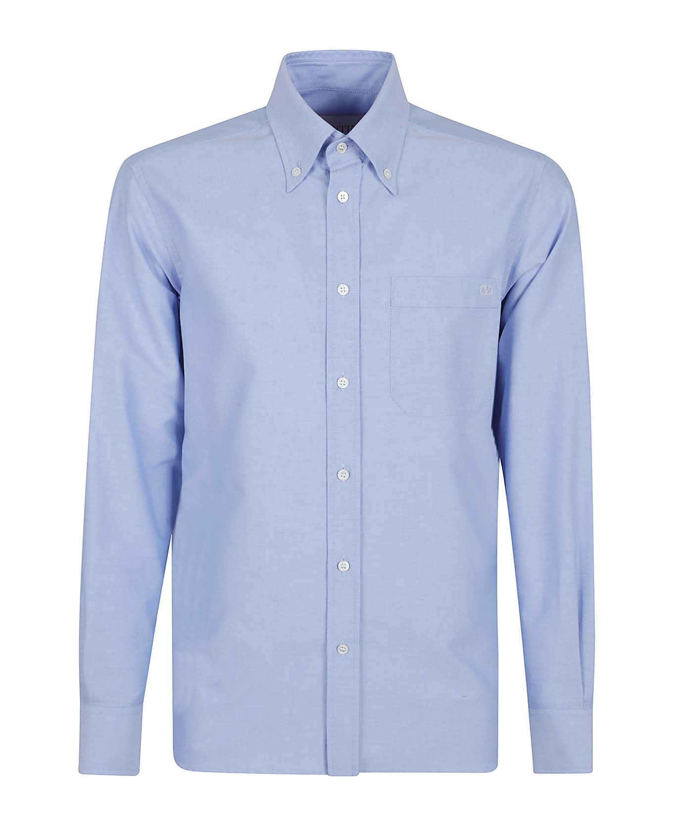 Valentino blue ready-to-wear with embroidered logo on the chest buttoned collar front button fastening chest pocket long sleeves buttoned cuffs curved hem