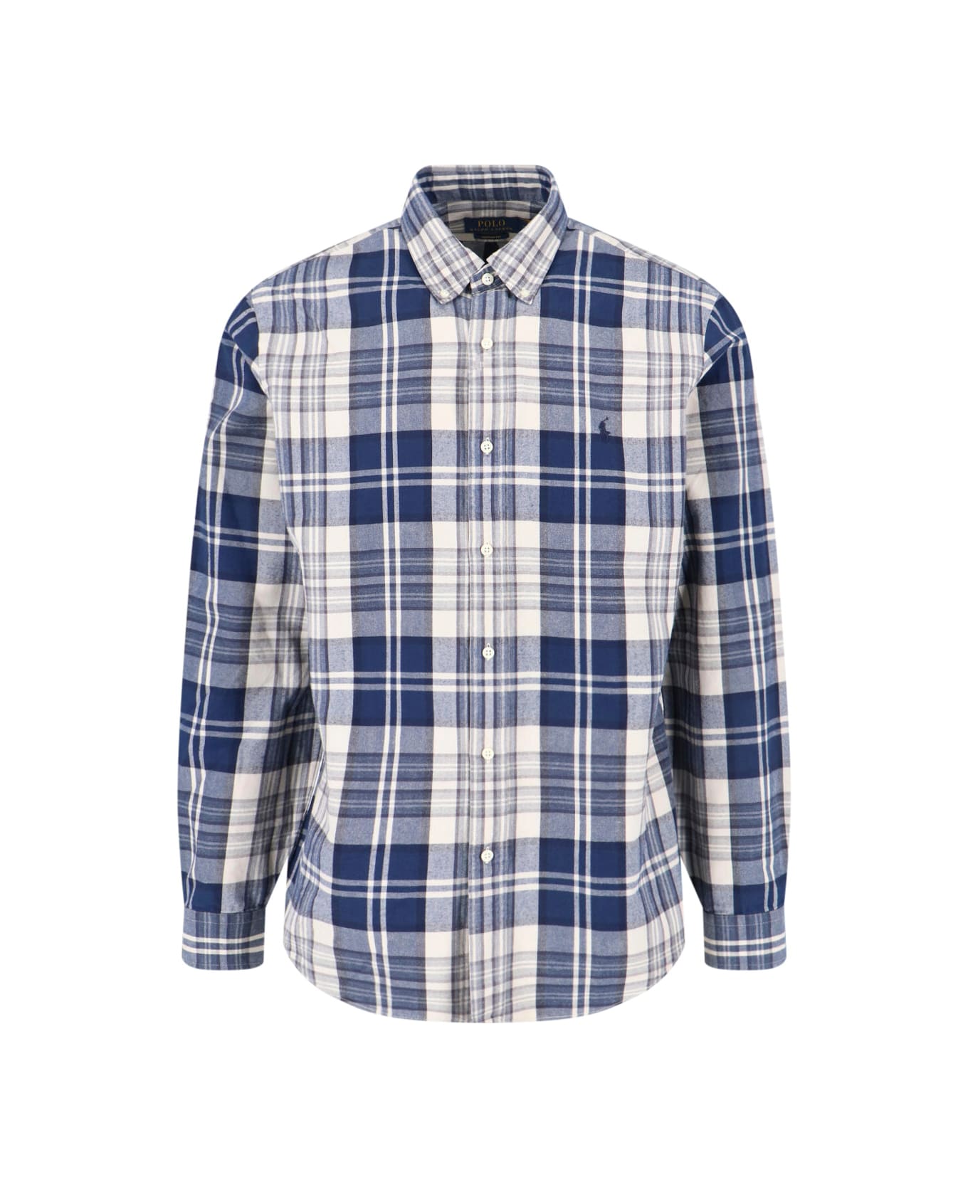 Polo Ralph Lauren check shirt in blue cotton with check pattern, button-down collar, button closure, contrast logo embroidery on the front, button cuffs, straight hem.