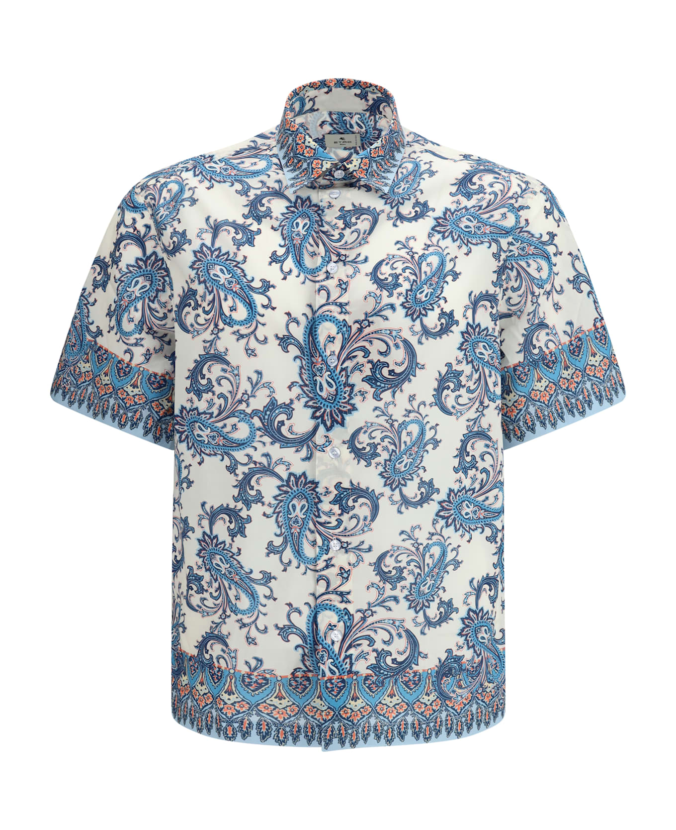 The cotton shirt with floral and paisley motif, short sleeves and button fastening by etro expresses effortless elegance through a distinctive and refined aesthetic. the lightweight fabric moves naturally with the body, while the print, a signature element of etro, creates a sophisticated and recognisable visual narrative. the clean silhouette and essential construction enhance its versatility, making it ideal for a contemporary wardrobe that blends character with ease. worn on its own or layered under a light jacket, this etro piece embodies a harmonious balance between decorative heritage and modern attitude.