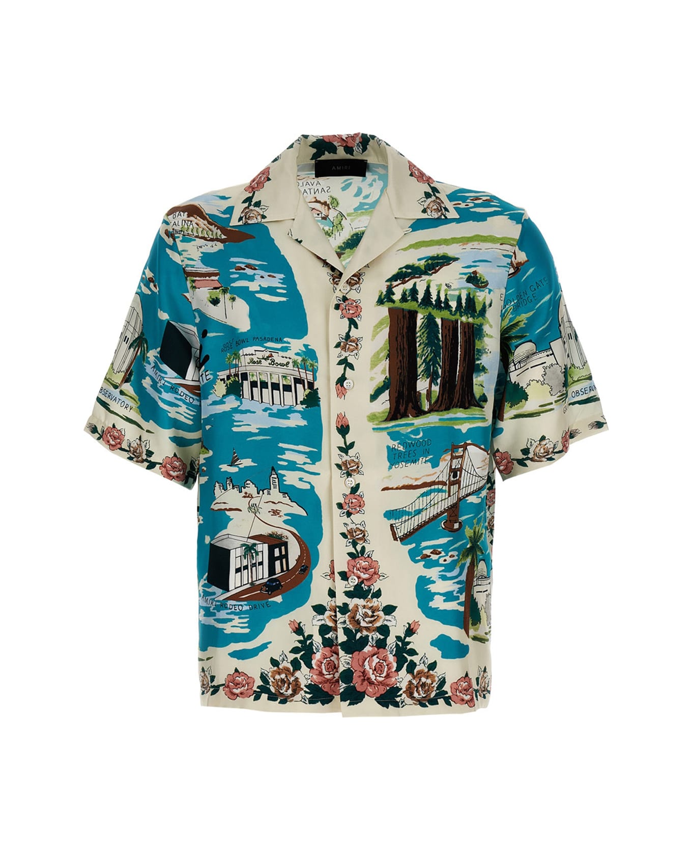 'Hawaiian' silk shirt with all over print, a button fastening, and short sleeves.