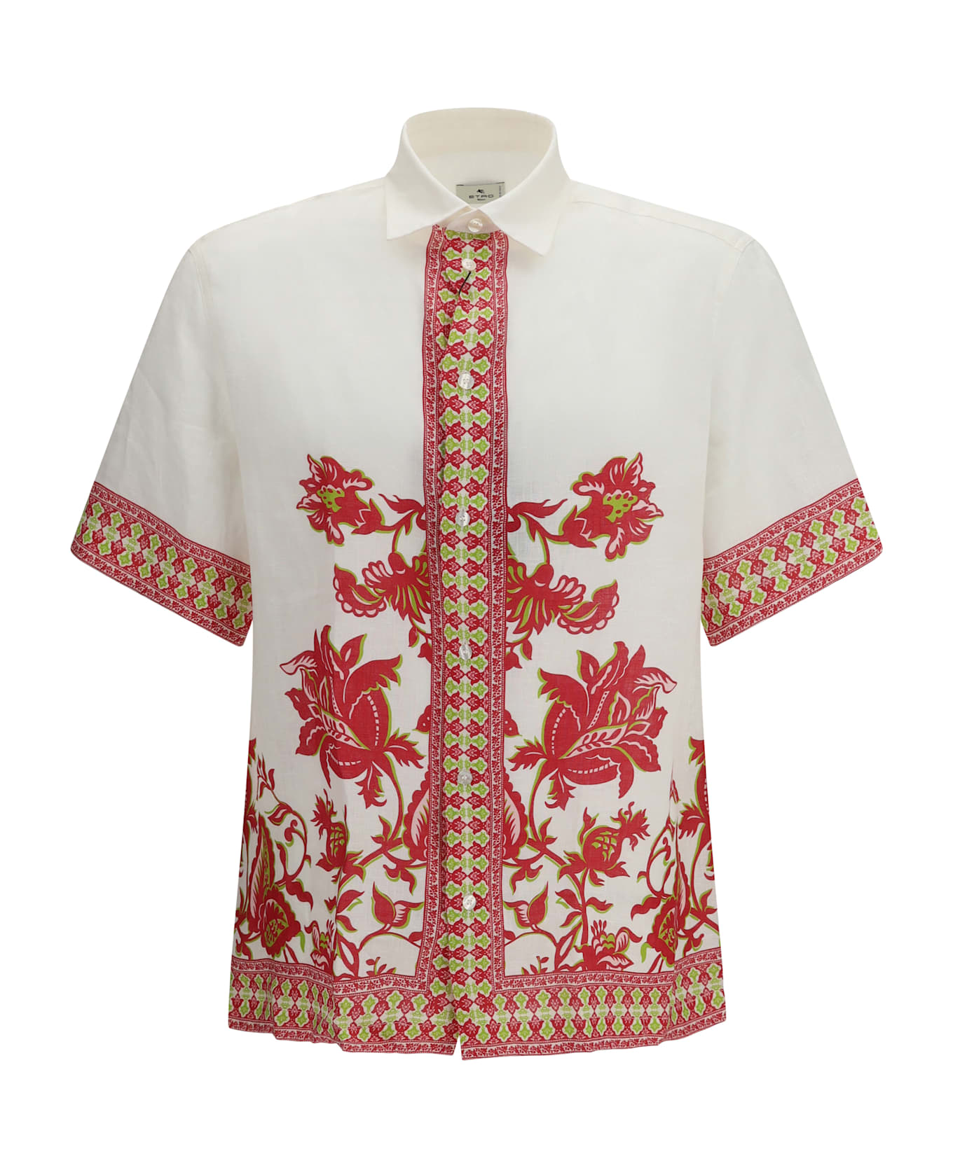 The linen shirt with floral print, short sleeves and button fastening by etro conveys a refined vision of warm-season lightness. the naturally breathable fabric provides texture and ease, while the floral print reflects the distinctive aesthetic language of etro, rooted in decorative heritage and artistic sensibility. its essential construction enhances the quality of the material, allowing the pattern to stand out with confidence and balance. designed for a relaxed yet intentional elegance, this shirt by etro integrates seamlessly into a contemporary wardrobe defined by individuality and sophistication.
