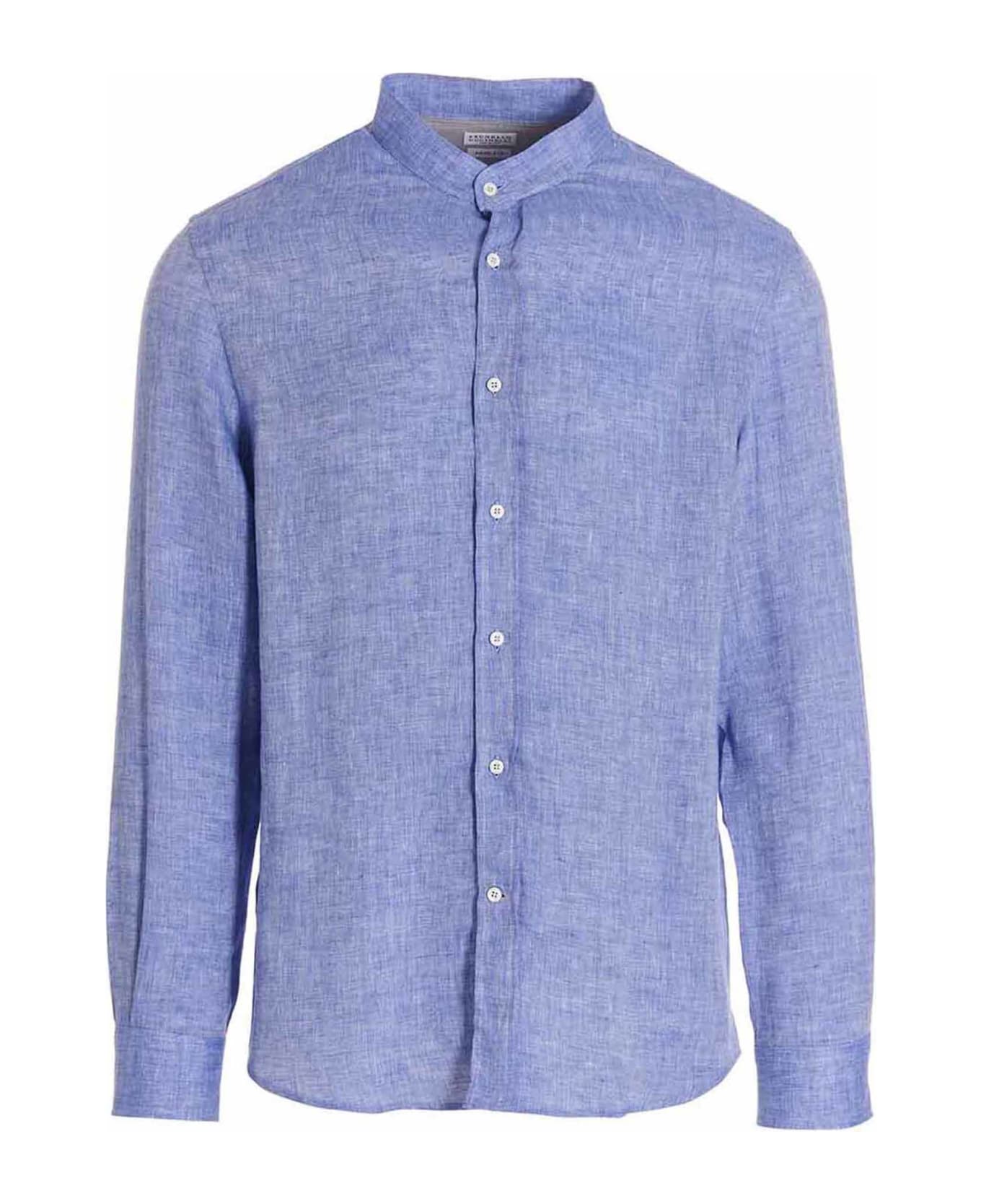 Linen shirt with mandarin collar, a button closure and long cuffed sleeves. Composition: 100% linen
