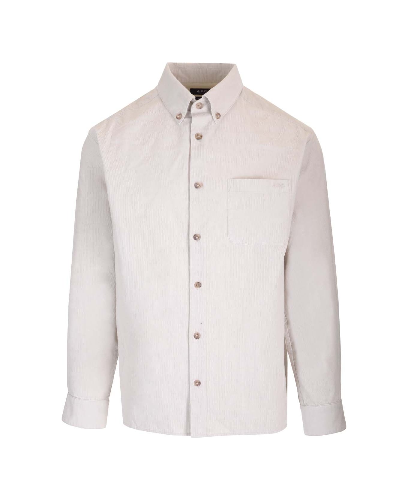 Off-white organic cotton "Mateo Logo" shirt from A. P. C. , featuring a button-down collar, a contrasting A. P. C. logo embroidered pocket and a front fastening with engraved A. P. C. buttons.