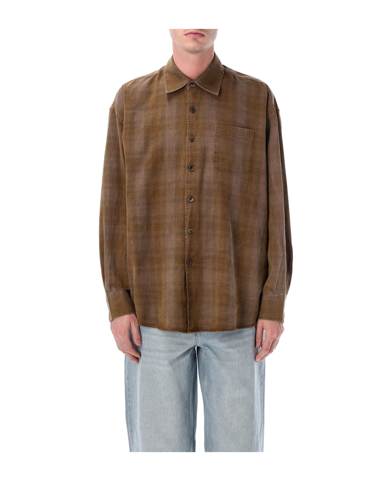 Crafted From Portuguese Cotton Flannel, The Our Legacy Borrowed Shirt In Dakota Flannel Check Features An Oversized Fit And A Soft, Comfortable Feel. Designed With A Single Chest Pocket, Mother-of-pearl Buttons, And Mitered Cuffs, It Combines A Relaxed Silhouette With Meticulous Detailing. Pigment-coated For A Subtle Vintage Effect, The Curved Hem Adds Versatility For Layering Or Standalone Styling. Dakota Check Pattern Pigment Coated For Vintage Look Single Chest Pocket Mother-of-pearl Buttons Mitered Cuffs, Curved Hem Oversized Fit Andrea Is 1,90 M And Wears Size 48